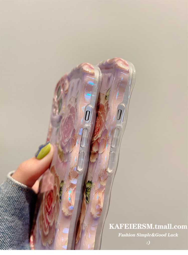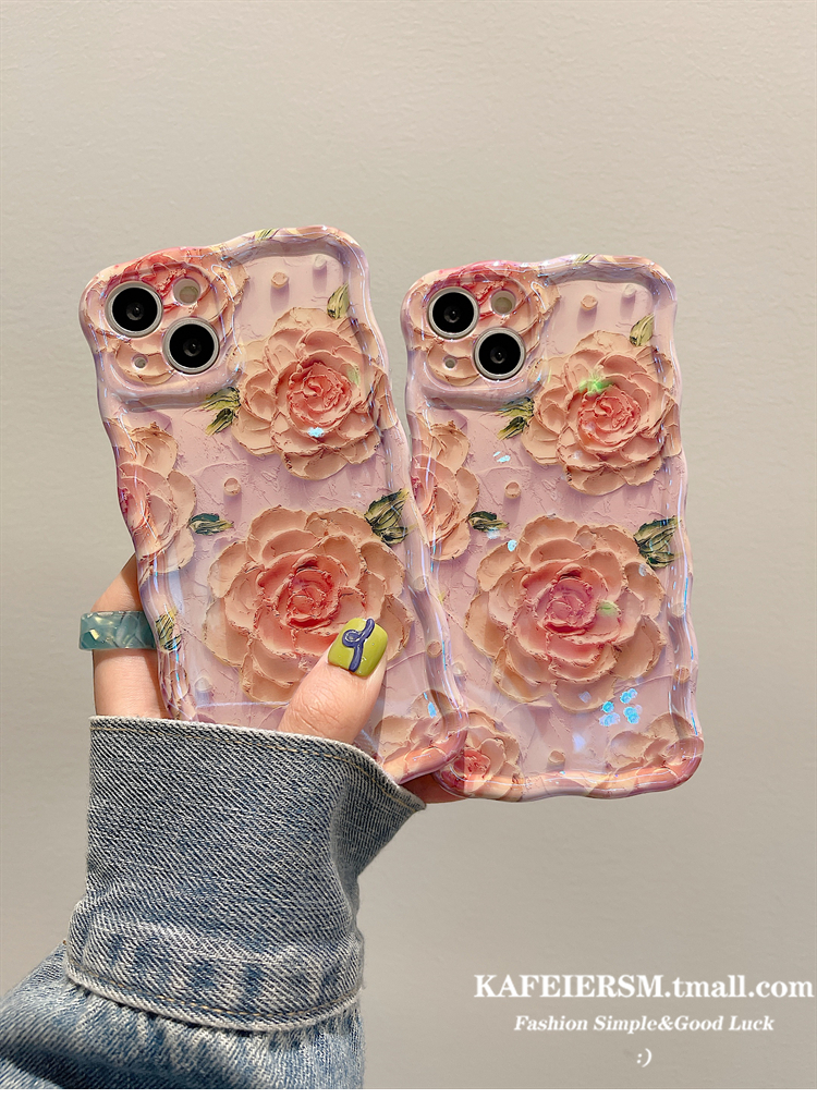 Accessories for iphone13 mobile phone case Apple 12 Blu-ray art oil painting flowers 14 new female 13pro
