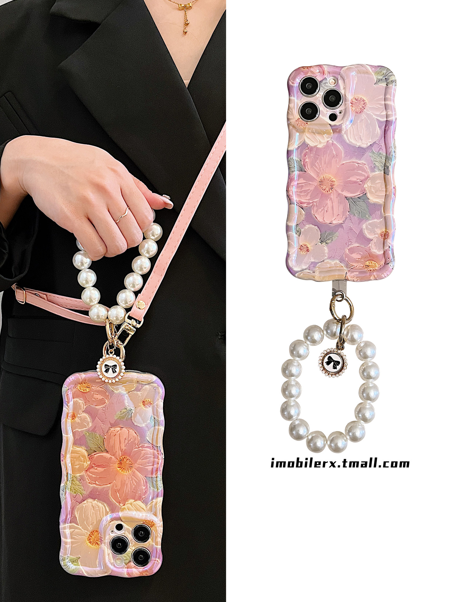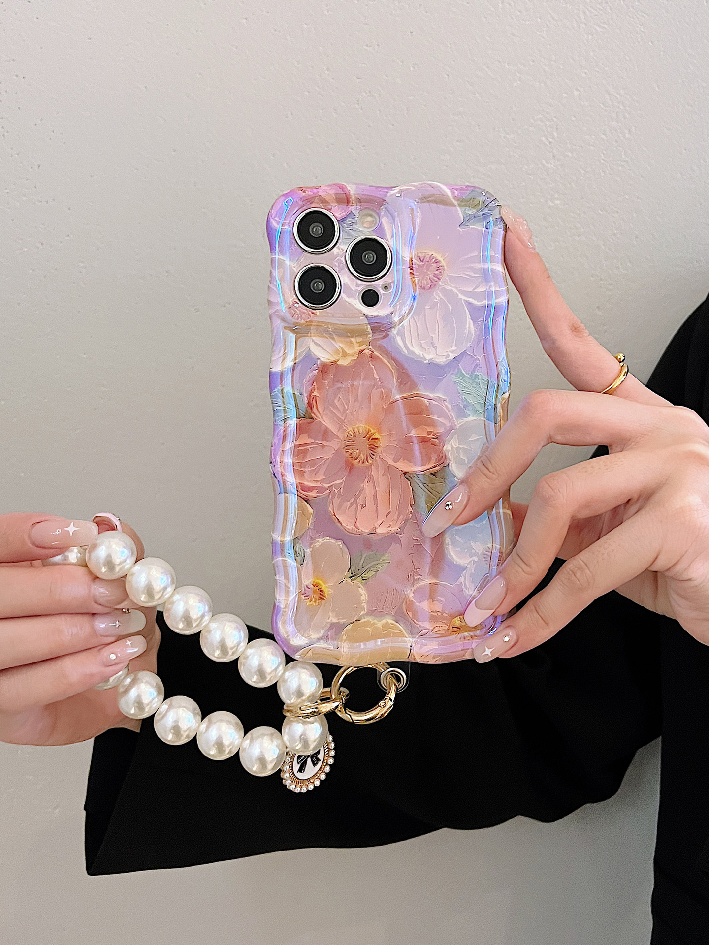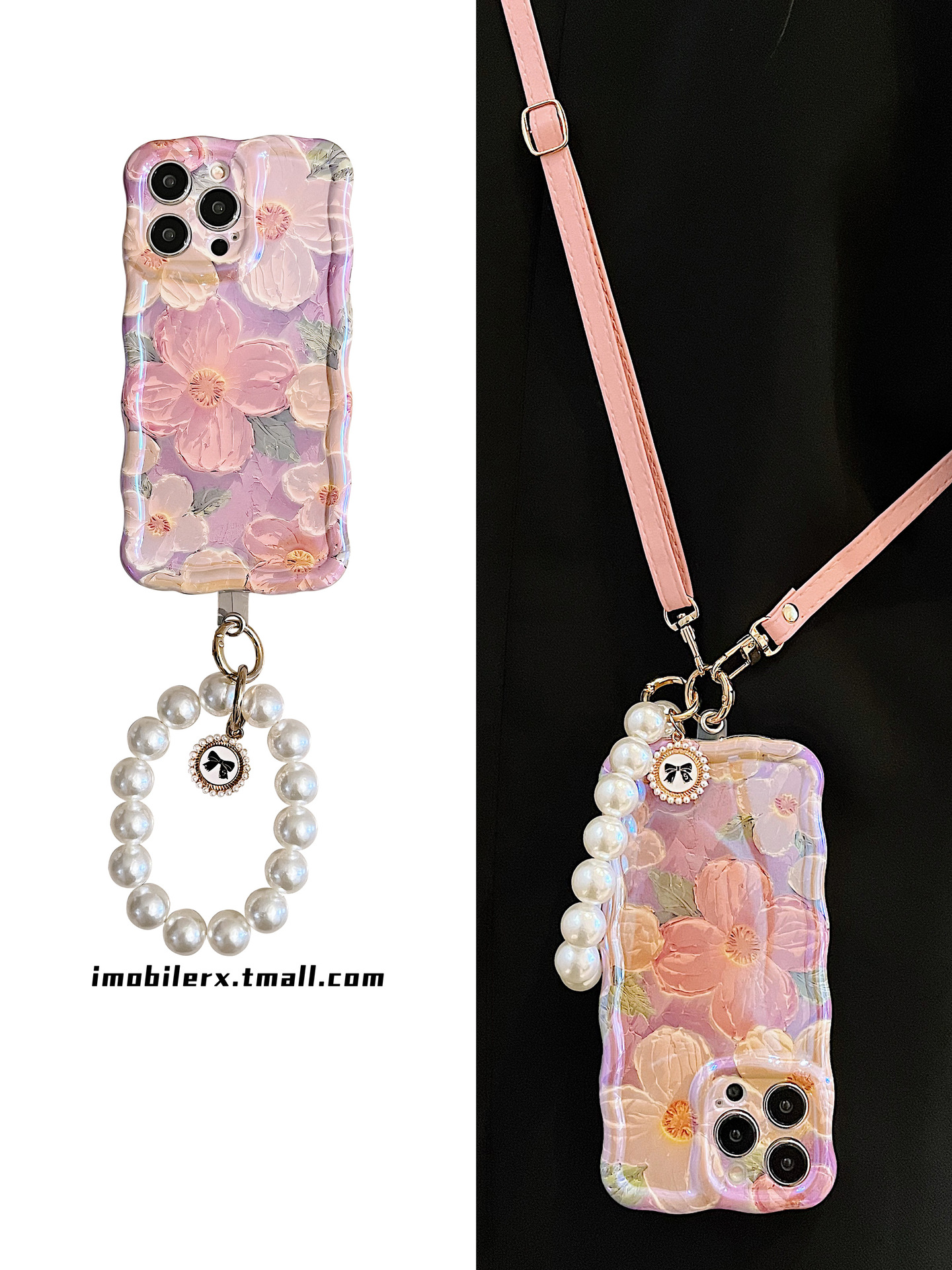 Accessories for iphone14promax mobile phone case Apple 13 Hyunya wind blue light oil painting flower 12 premium sense 11
