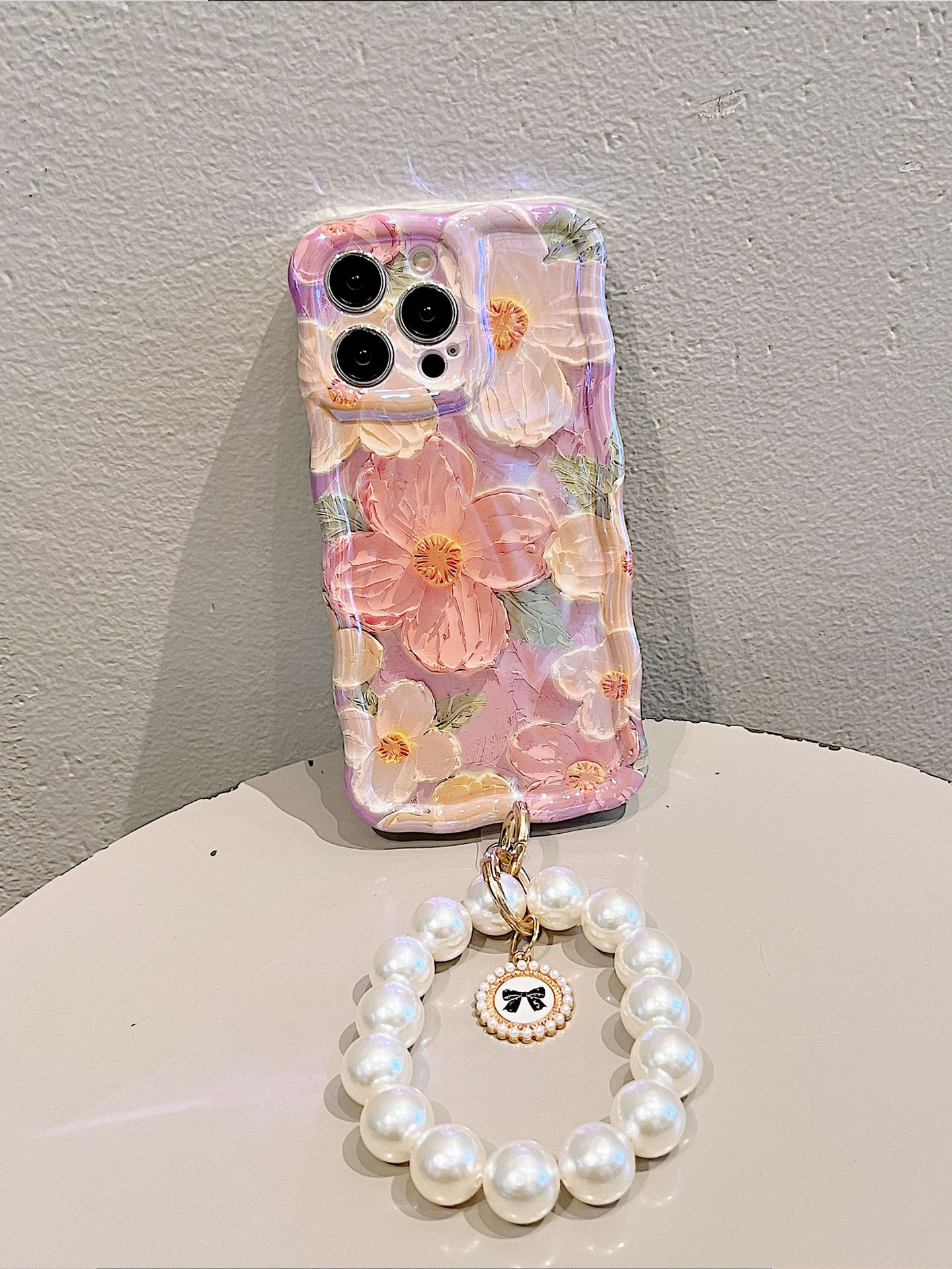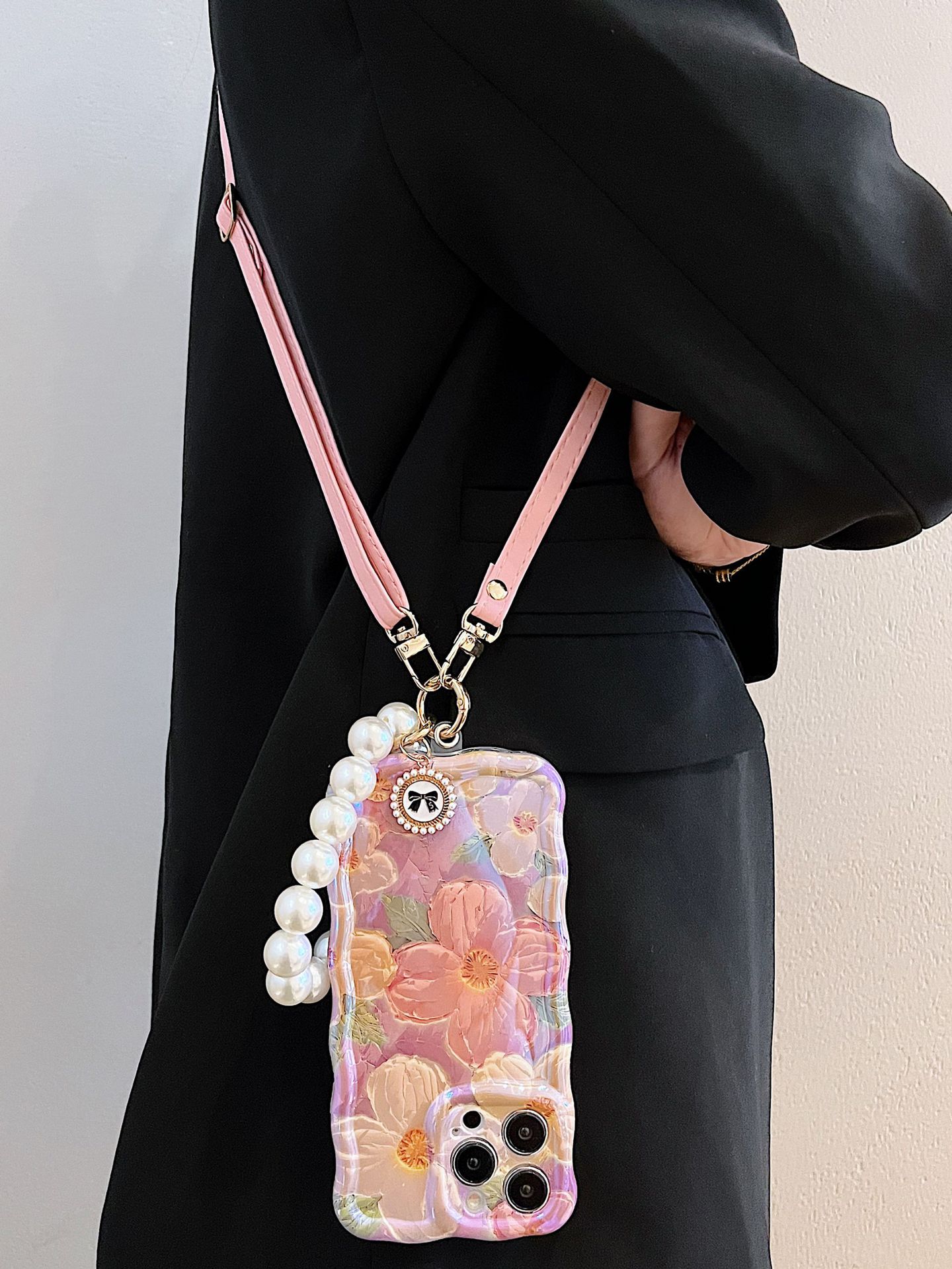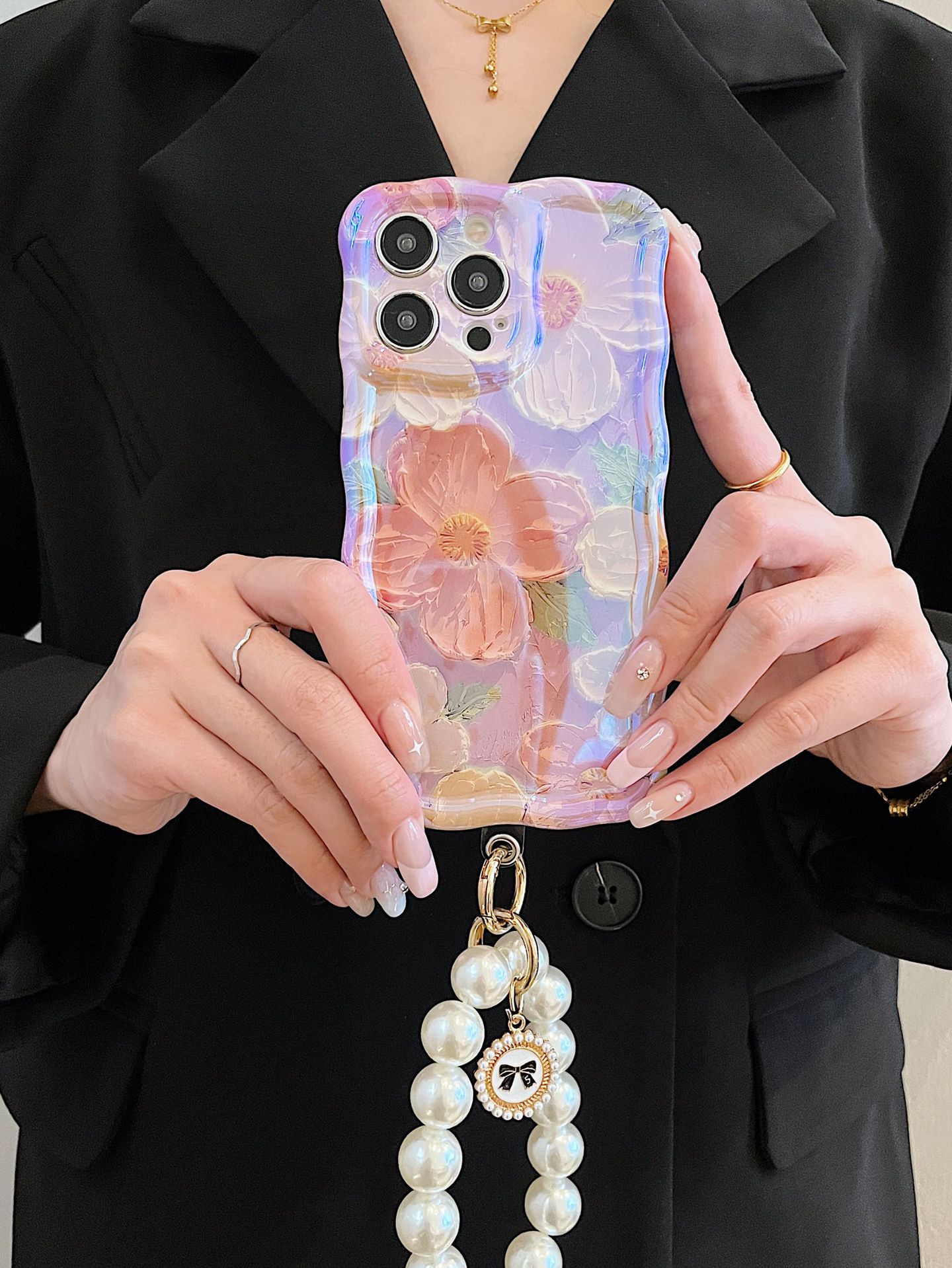 Accessories for iphone14promax mobile phone case Apple 13 Hyunya wind blue light oil painting flower 12 premium sense 11