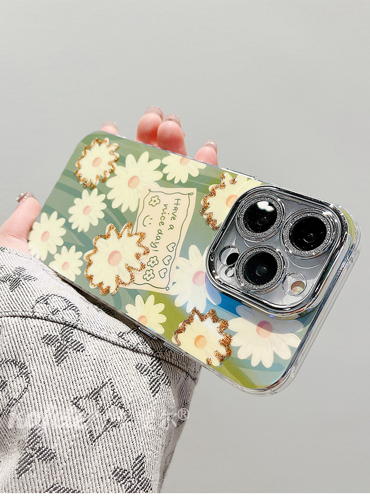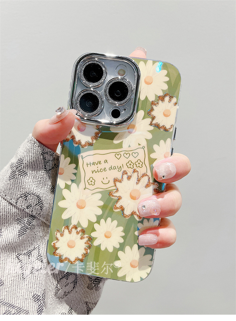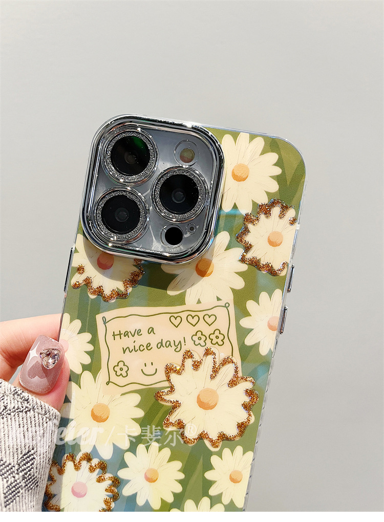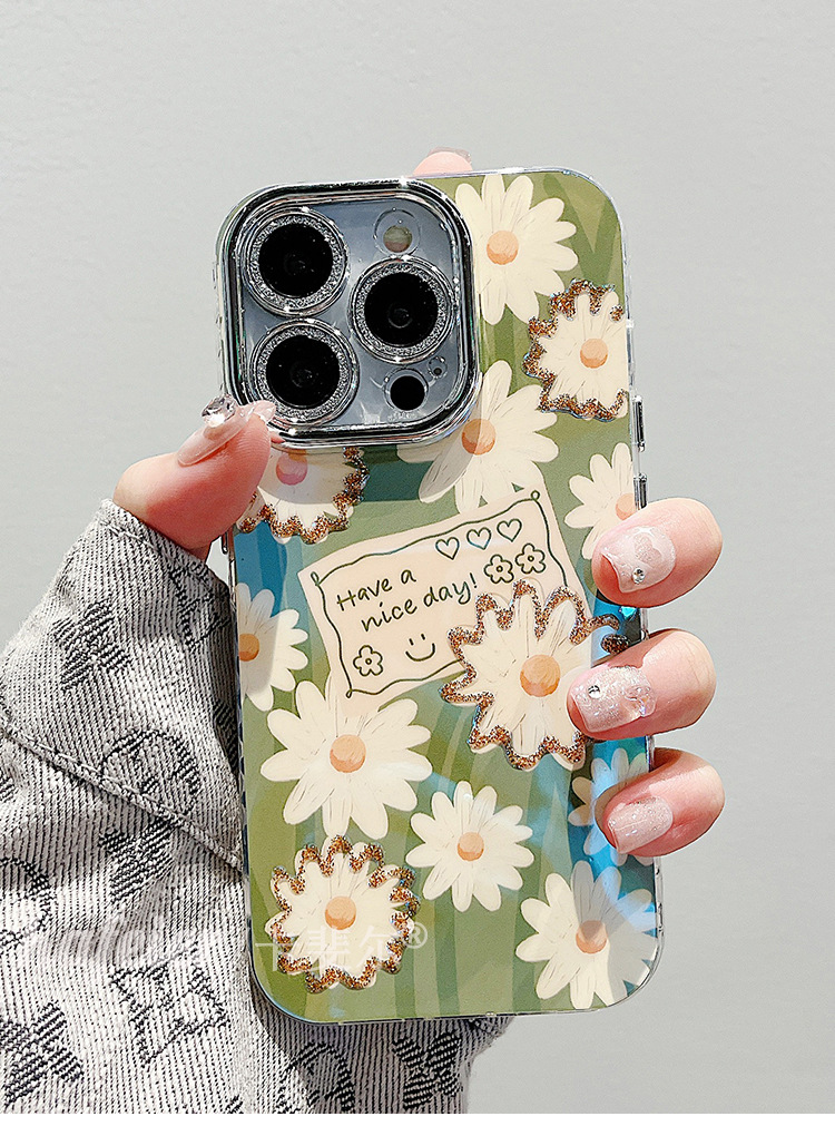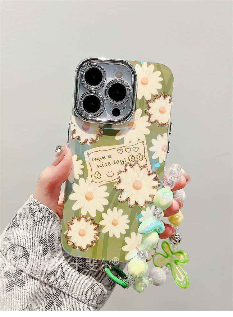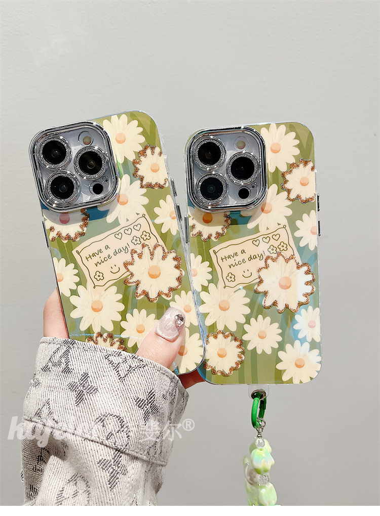 Accessories for premium sense point drill oil painting daisy flower bracelet iphone15pro max mobile phone case apple 14 new