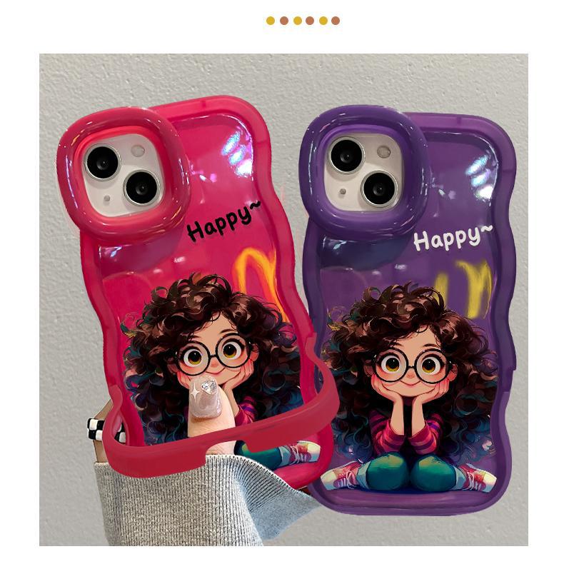 Accessories Glasses Girl for Apple 14iPhone15 Dual Stand New Cute Niche Phone Case Creative Cartoon Tide