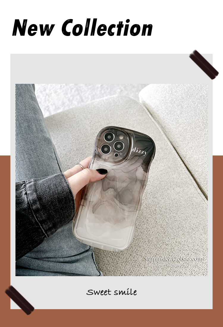 Accessories ins niche black and gray ink painting for iPhone14Plus Apple 13promax mobile phone case 11/12 women