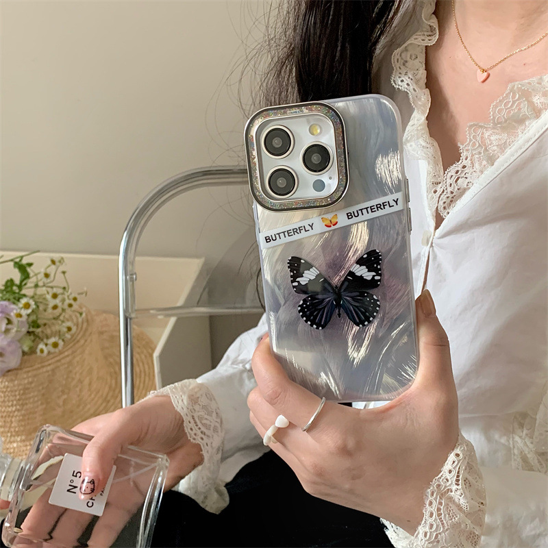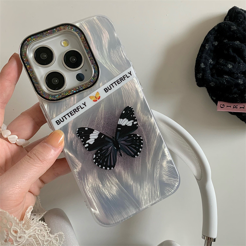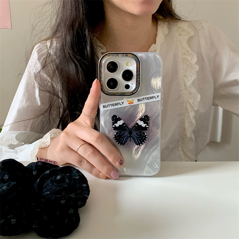 Accessories ins wind feather butterfly for iPhone15 mobile phone case Apple 14promax anti-drop 13pro women 12/11