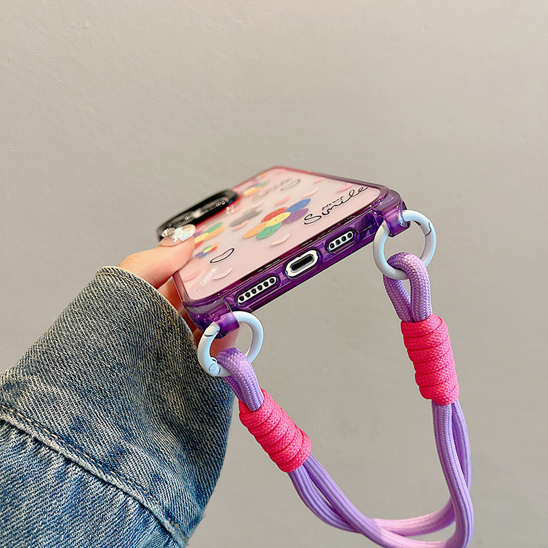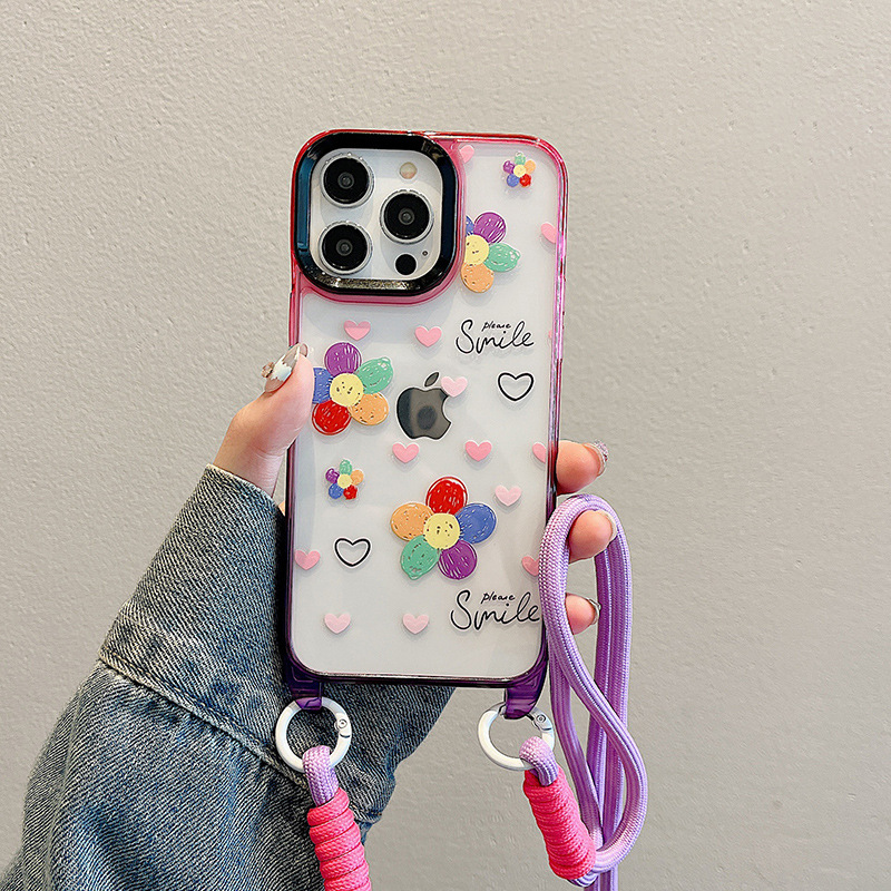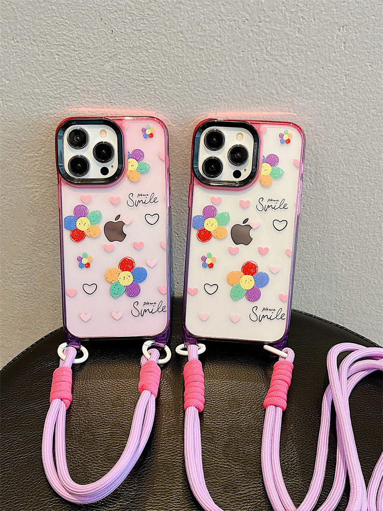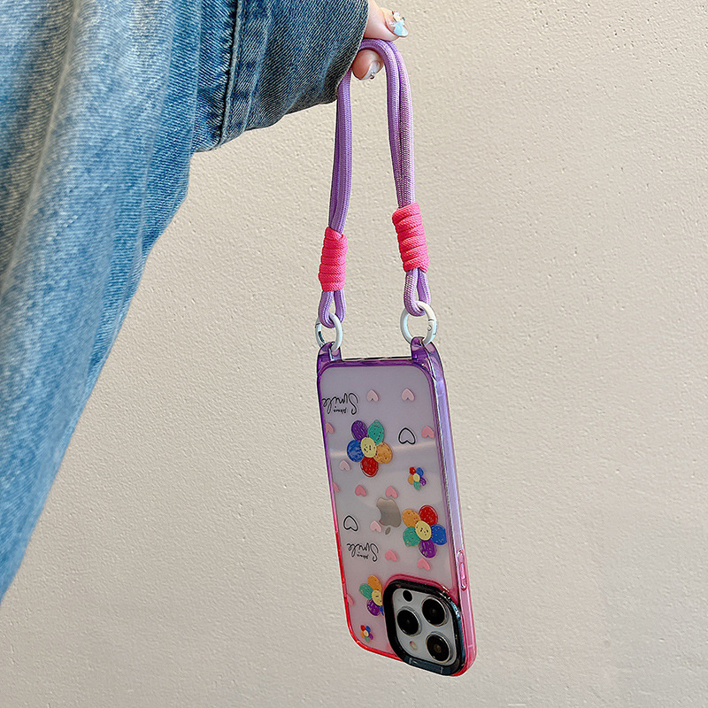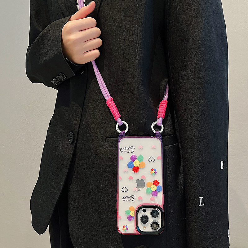 Accessories ins wind graffiti sunflower for apple 15 mobile phone case 2024 summer new messenger strap iphone14p