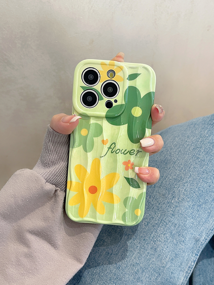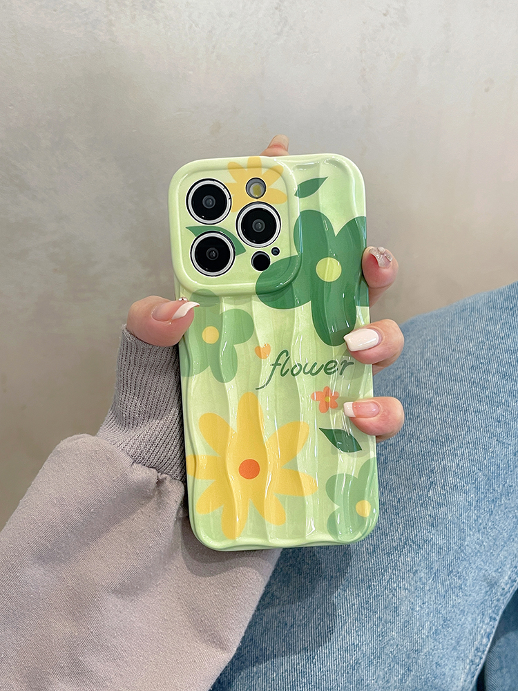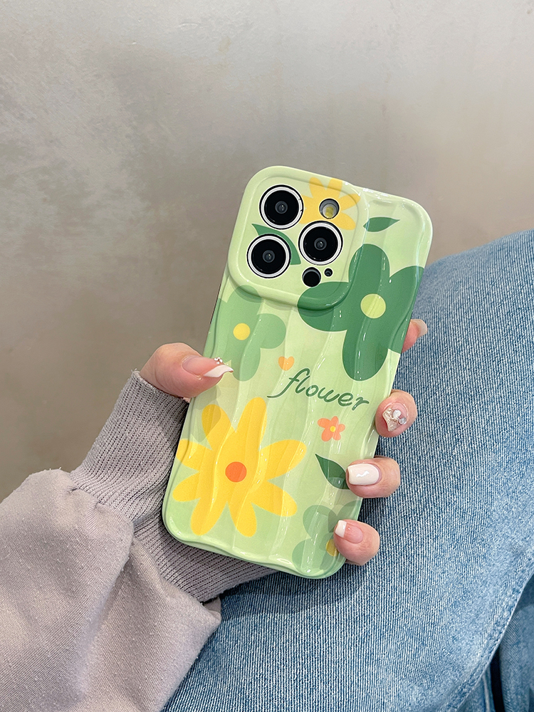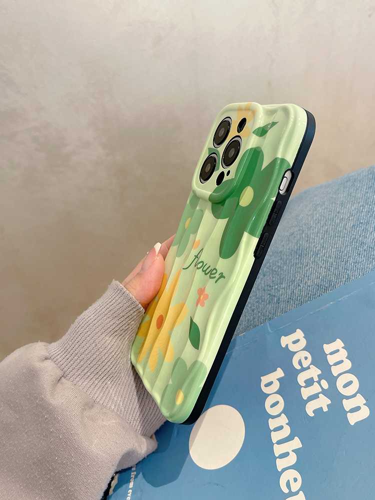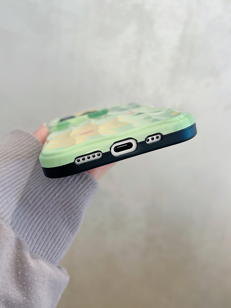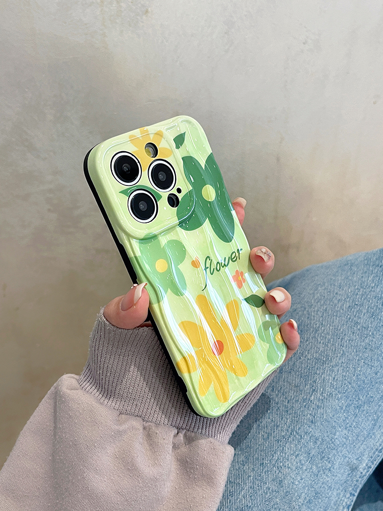 Accessories Japanese and Korean ins green oil painting flowers for Apple 15promax mobile phone case iphone14pro premium sense 13p