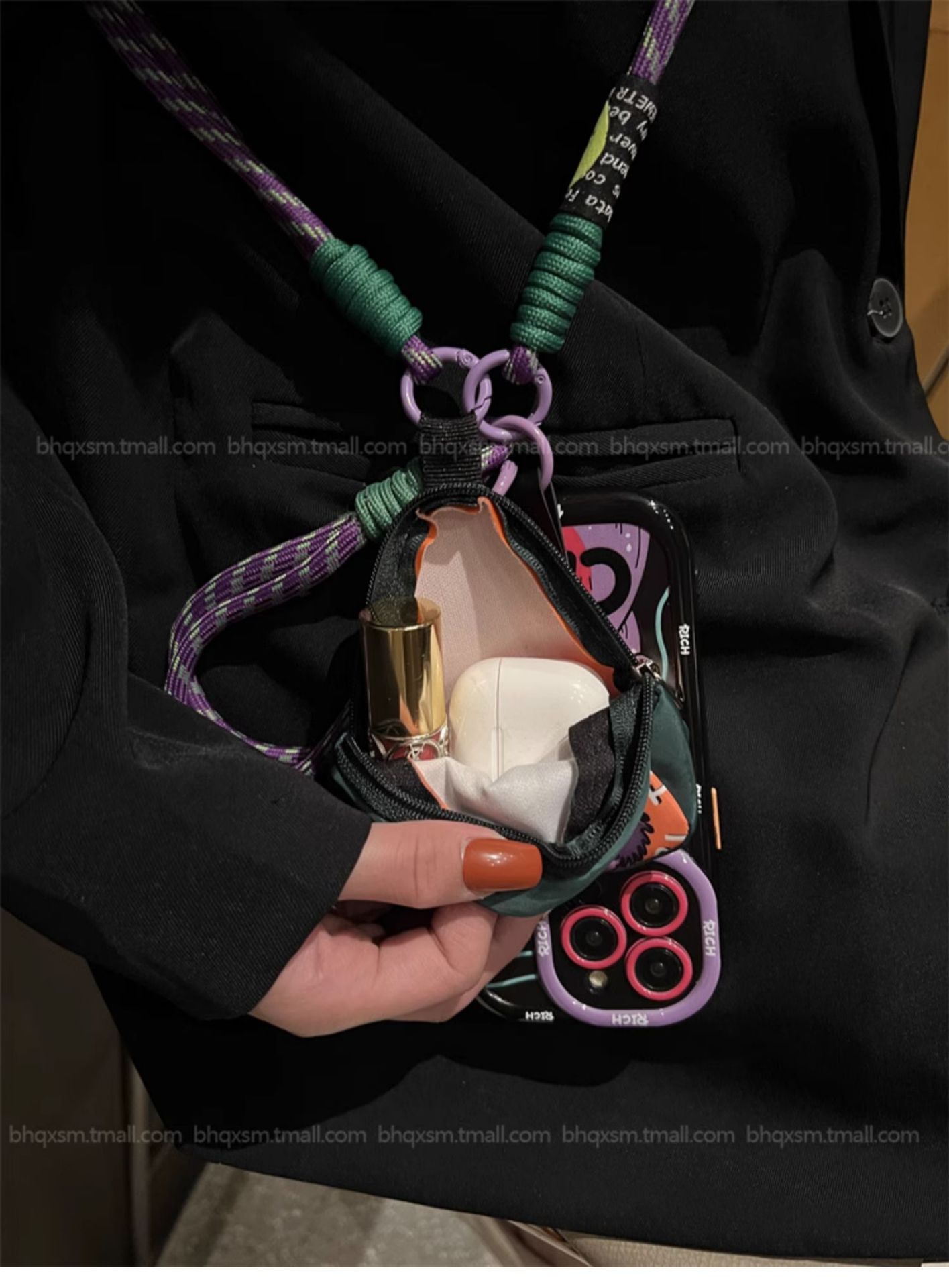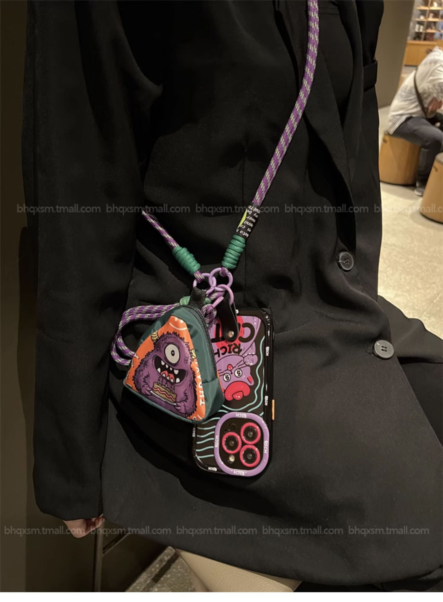 Accessories Lucky Cat Monster Earphone Bag for Apple 14promax mobile phone case iPhone13 crossbody anti-drop protective case
