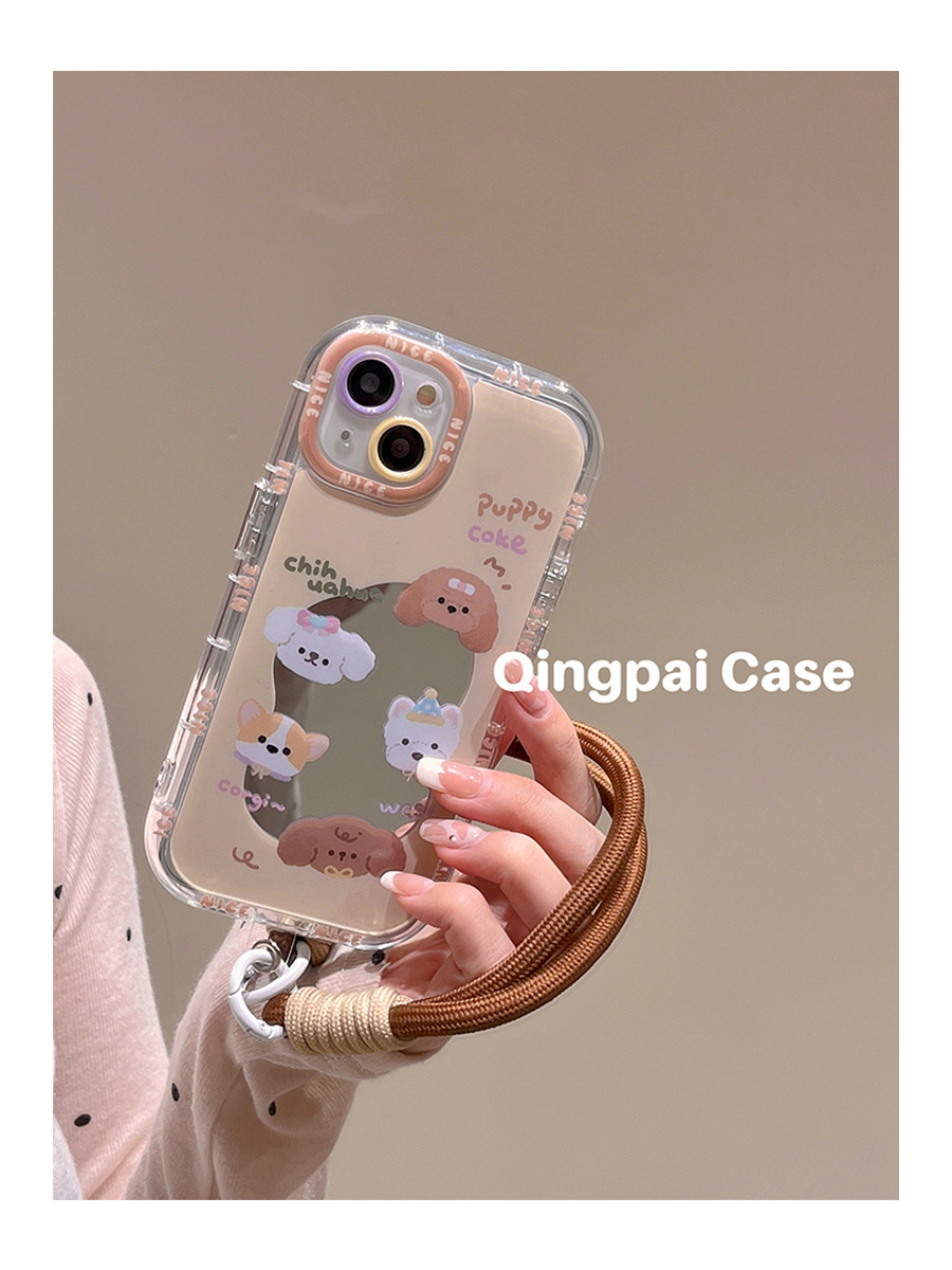 Accessories Mirror Cartoon Puppy Wrist Lanyard for Apple 15promax mobile phone case iphone13 new 14pro