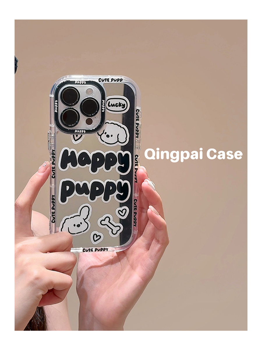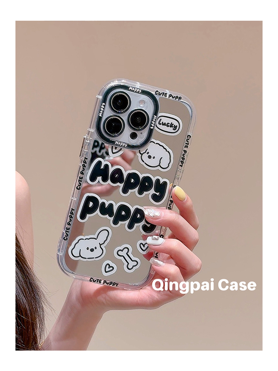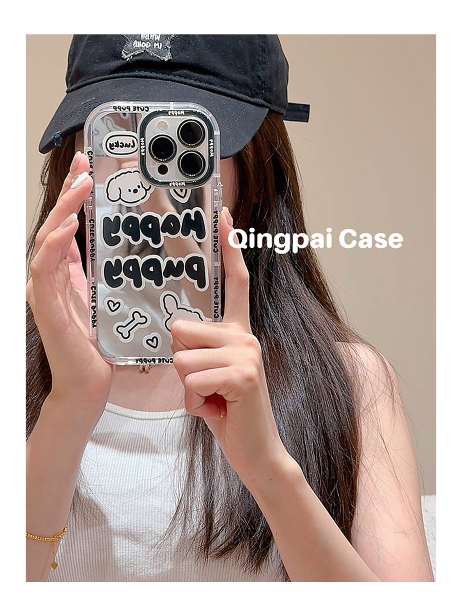 Accessories Mirror Personality English Puppy Suitable for Apple 15promax Mobile Phone Case iphone13 New 14pro Women's