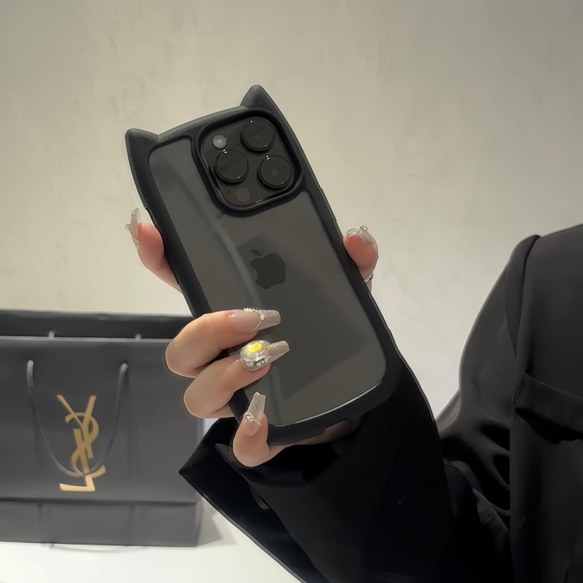 Accessories Niche three-dimensional cat ear transparent Apple 15promax mobile phone case iPhone14 new 13 girlfriends 12 sets 11