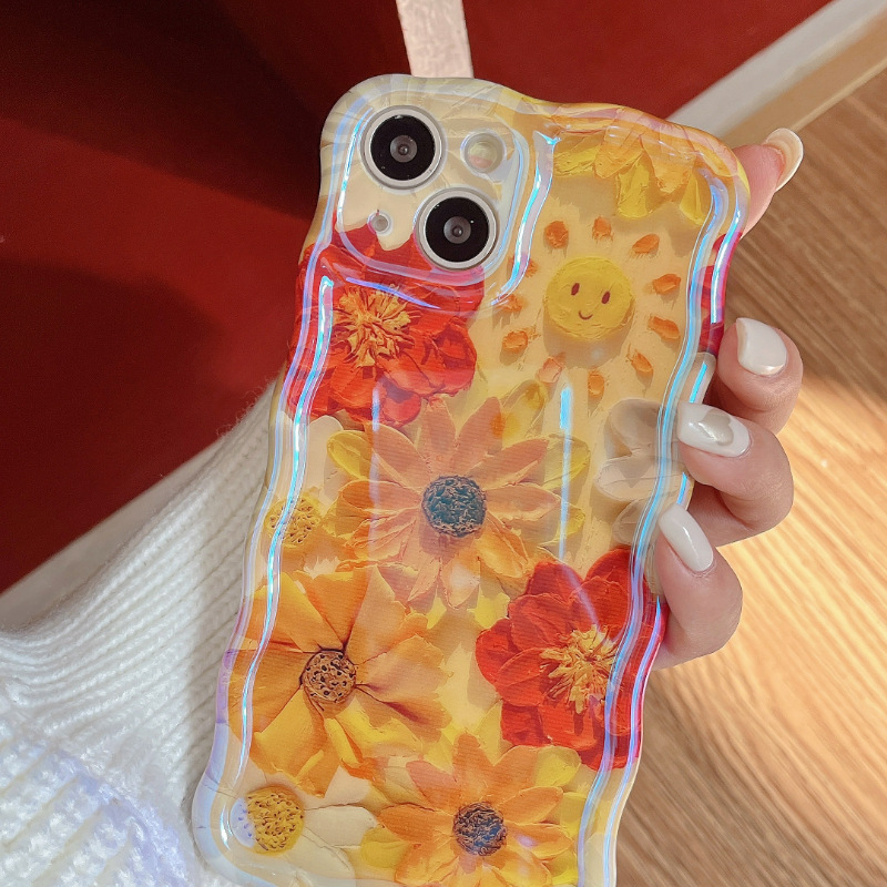 Accessories (Shipping fee not included) Applicable to Apple 14 mobile phone case iphone15promax blue light oil painting flower 11 spring Korean new 12 Internet celebrity