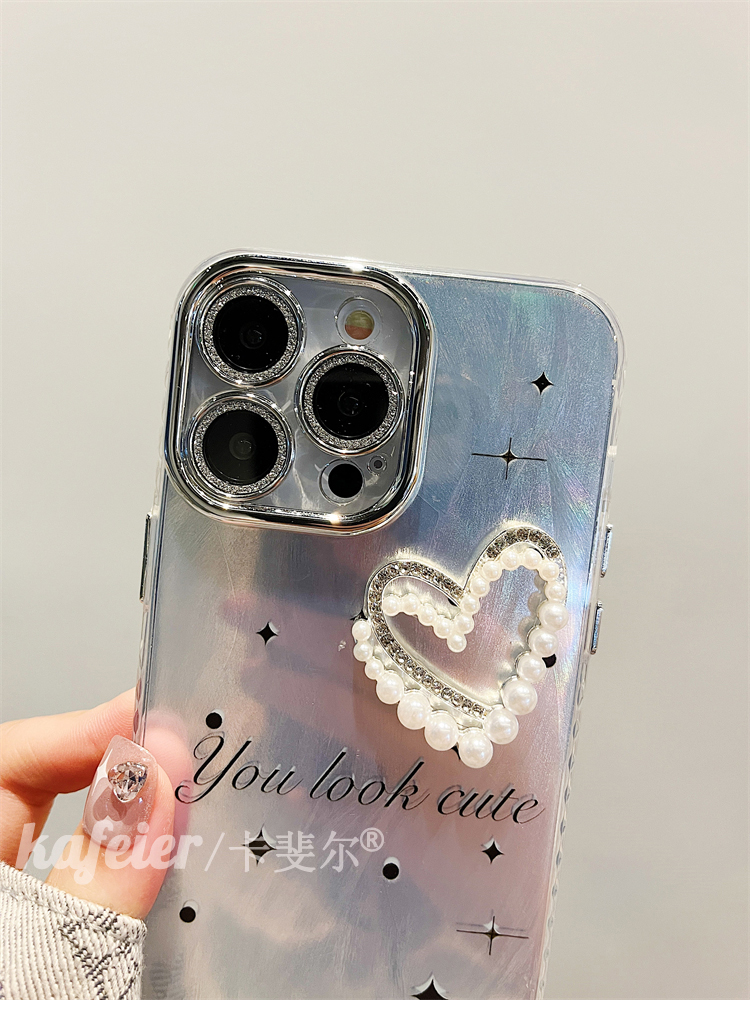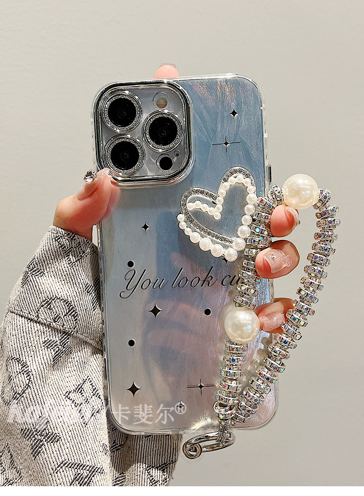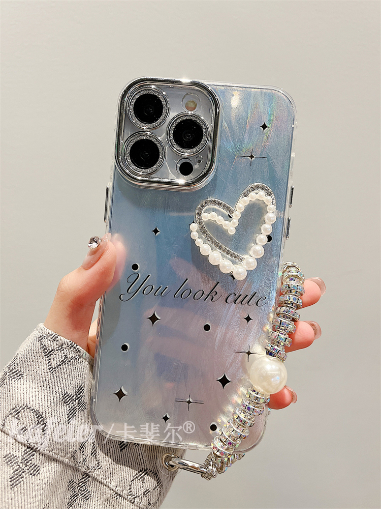 Accessories Suitable for high-end silver feather yarn three-dimensional love bracelet iphone14promax mobile phone case Apple 15 new model