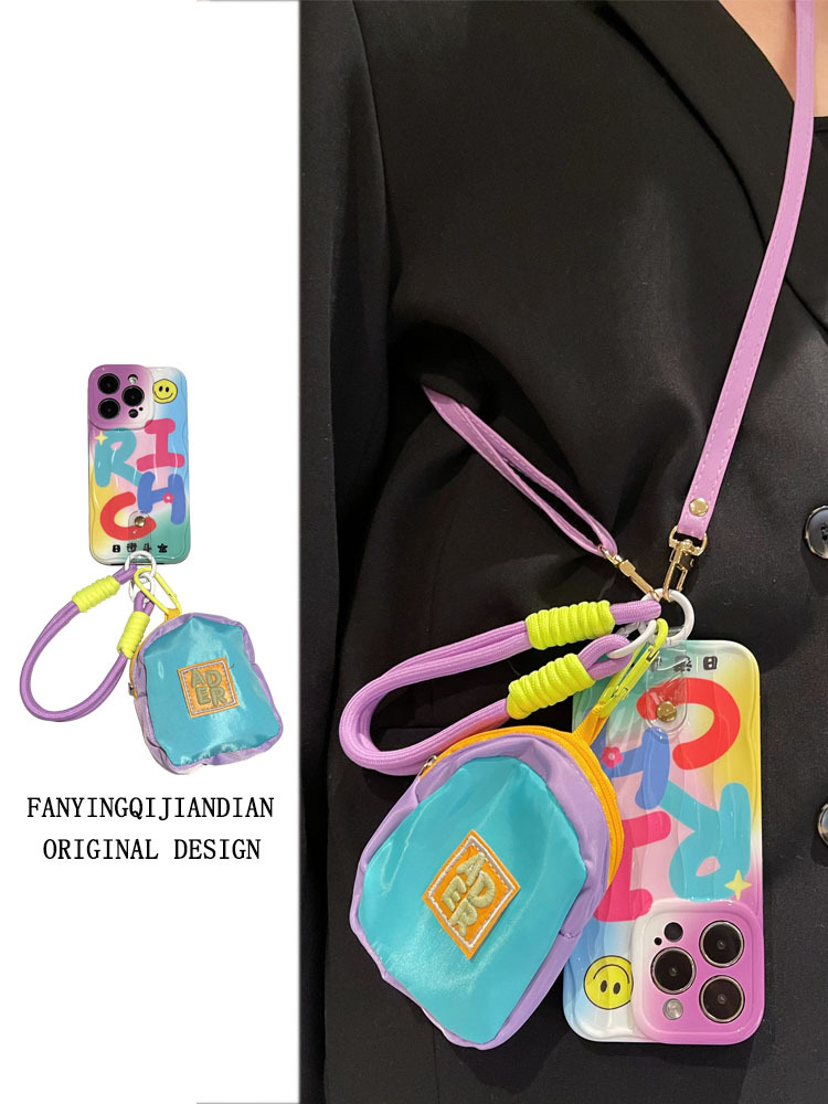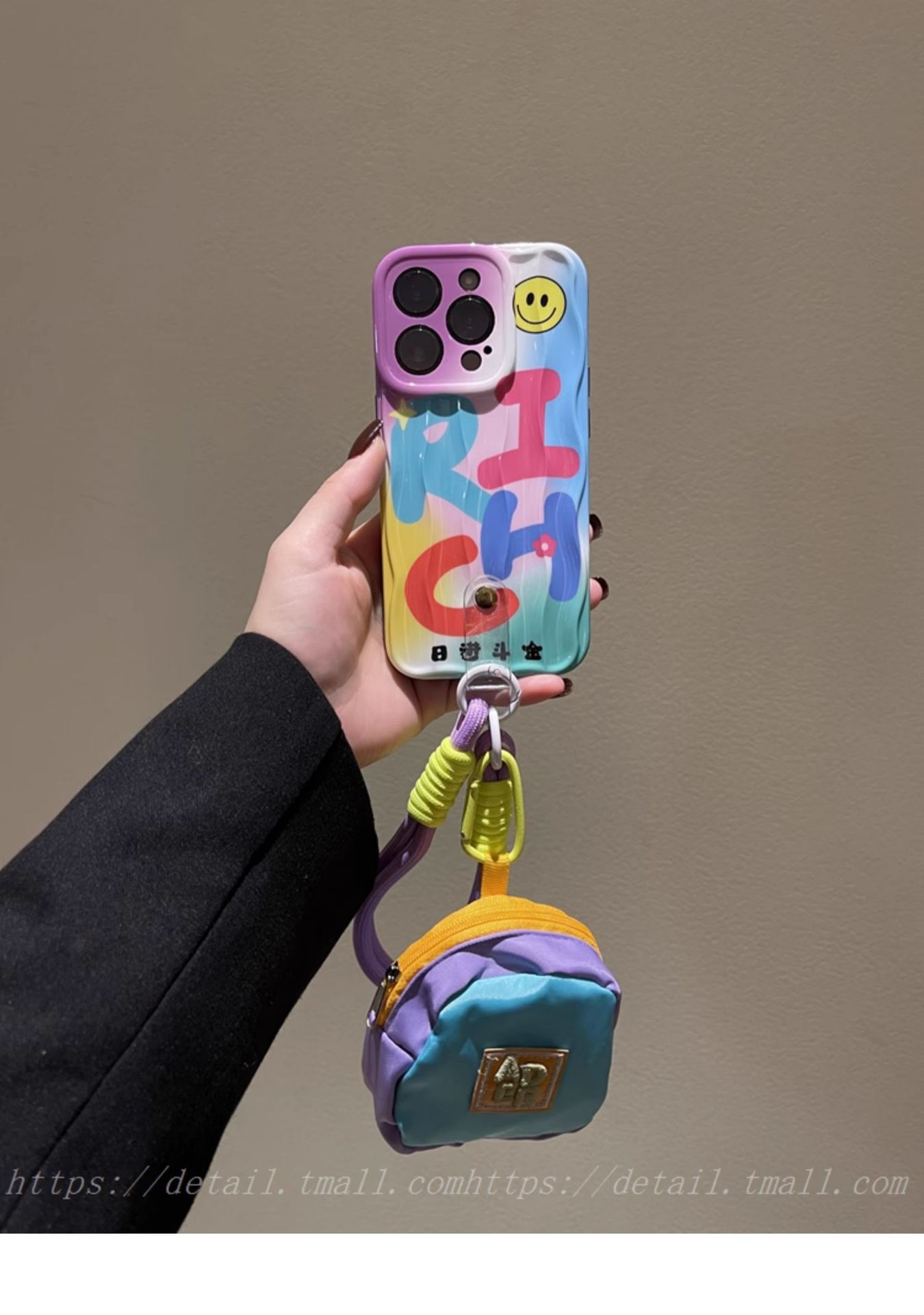 Accessories Summer dopamine daily gold bucket small schoolbag hand strap for Apple 15promax mobile phone case iPhone14p