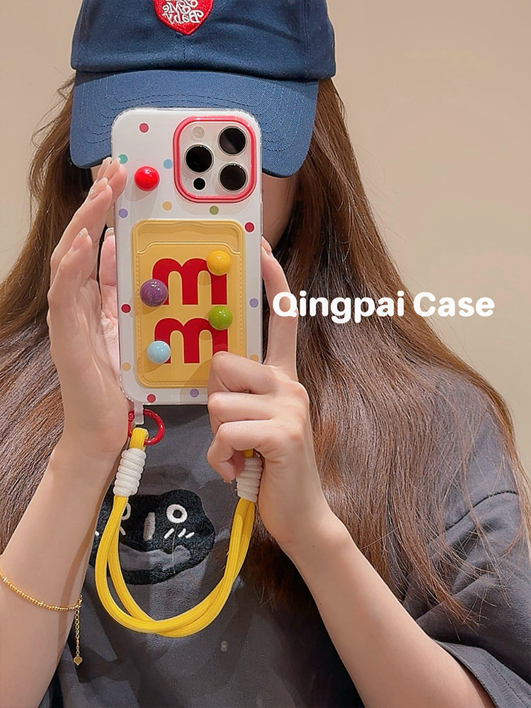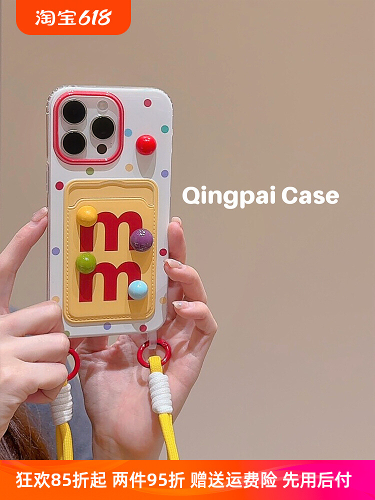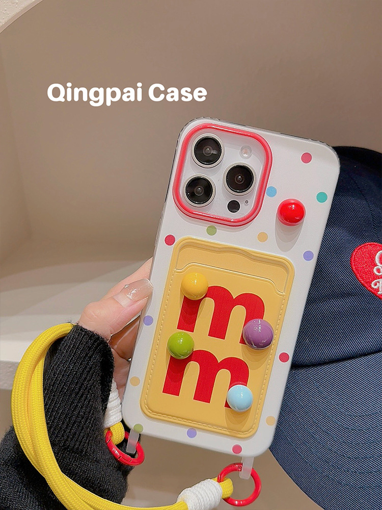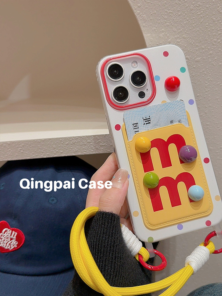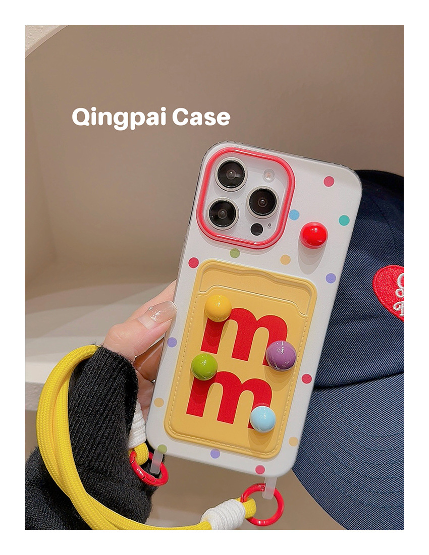 Accessories three-dimensional m bean card bag lanyard suitable for Apple 15promax mobile phone case iphone13 new 14pro women's 12