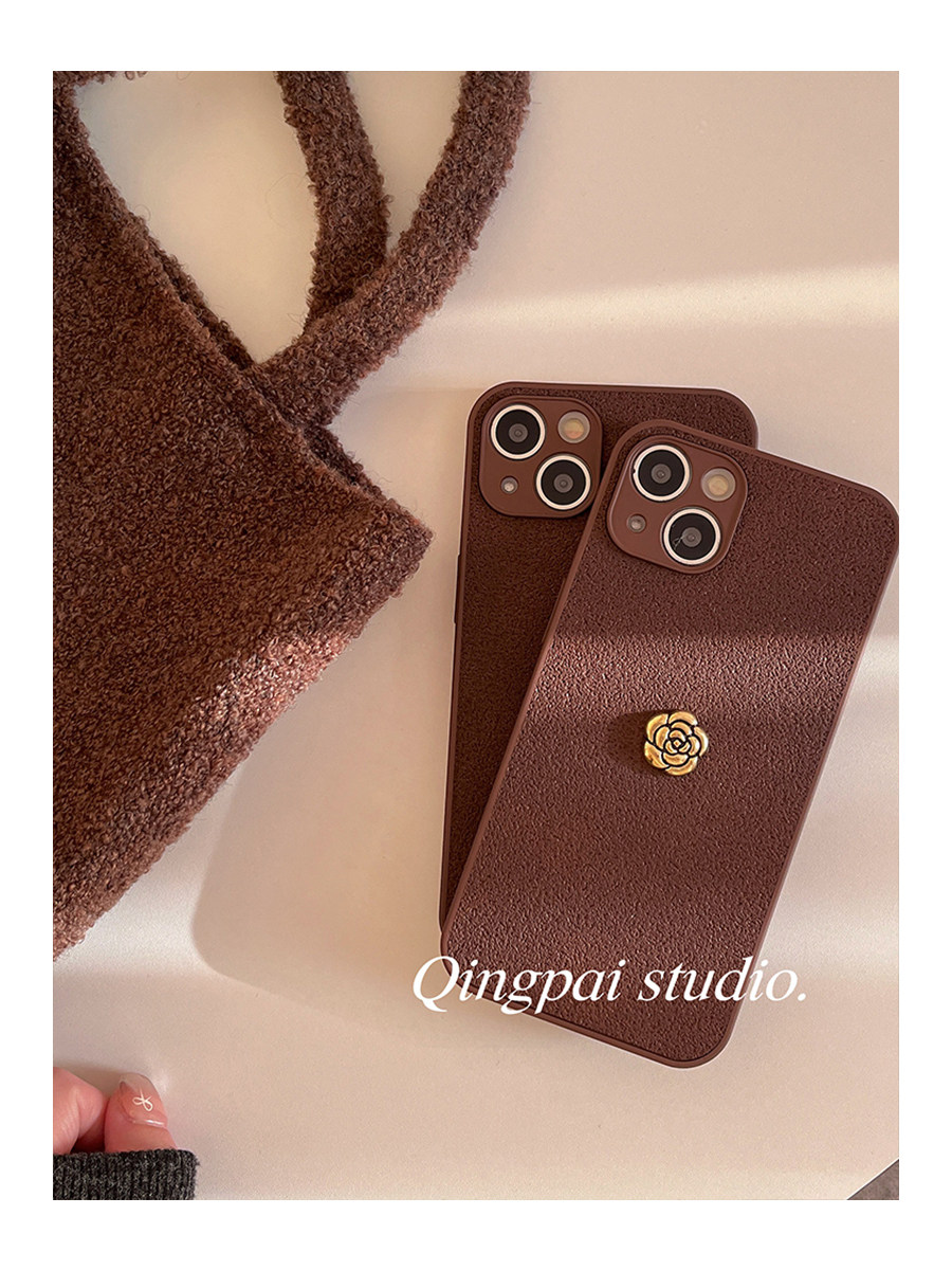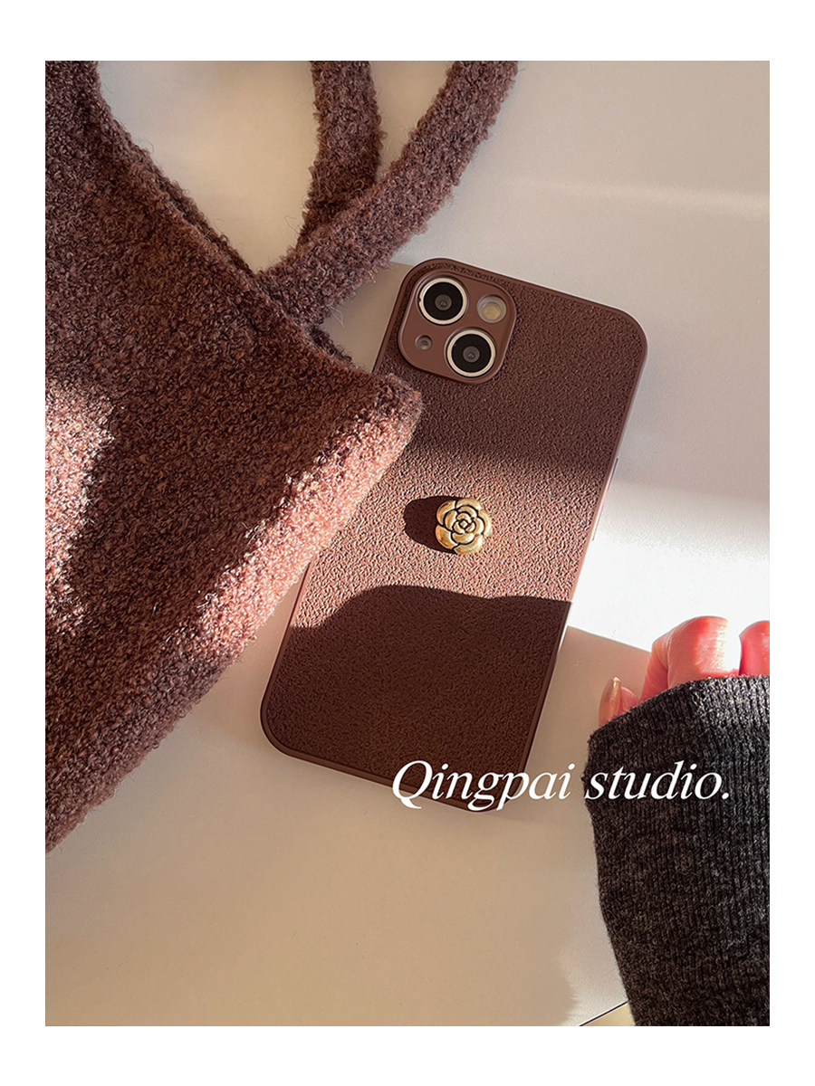 Accessories Xiaoxiangfeng three-dimensional camellia for iPhone15Pro mobile phone case Apple 14 new 13 women 12 autumn and winter 14p