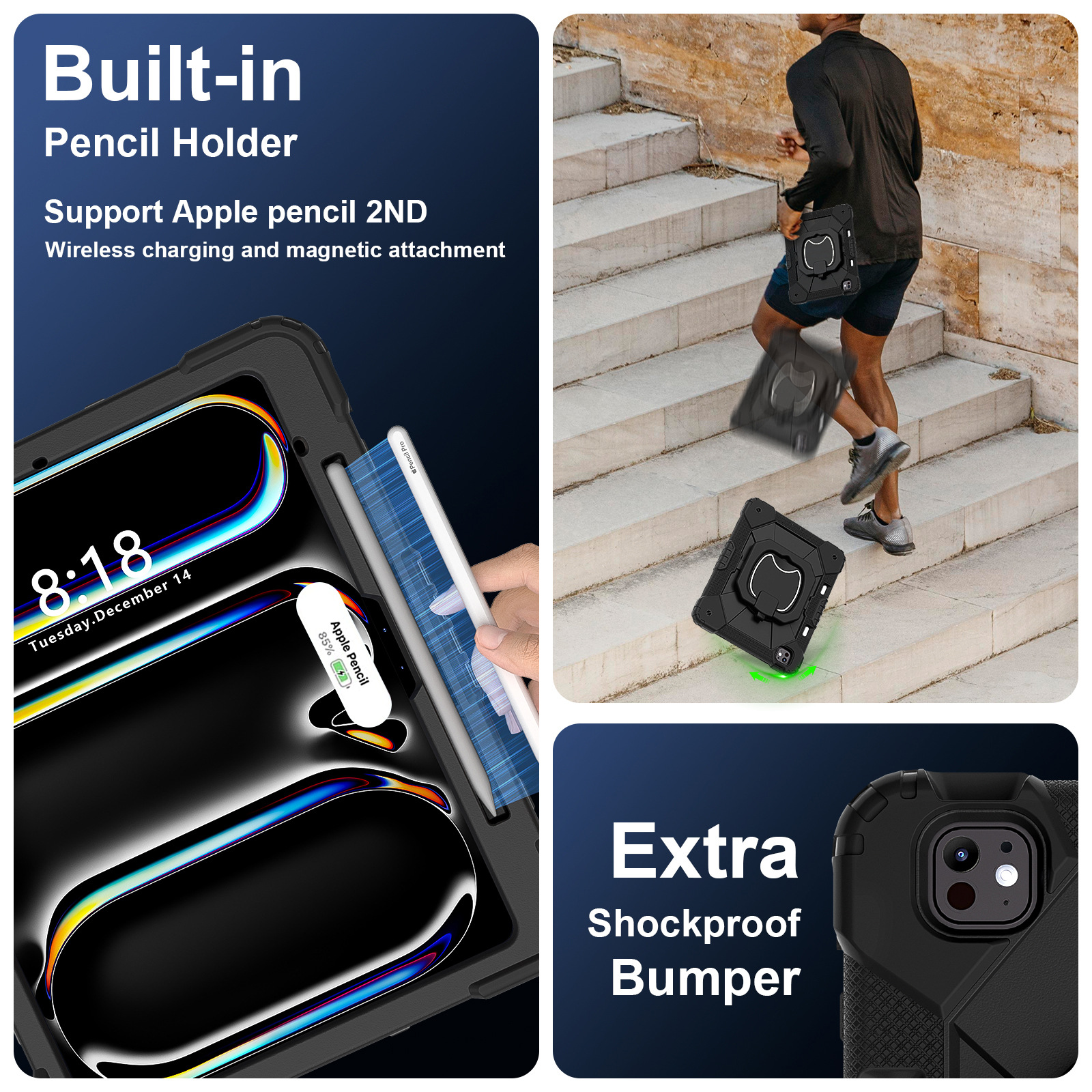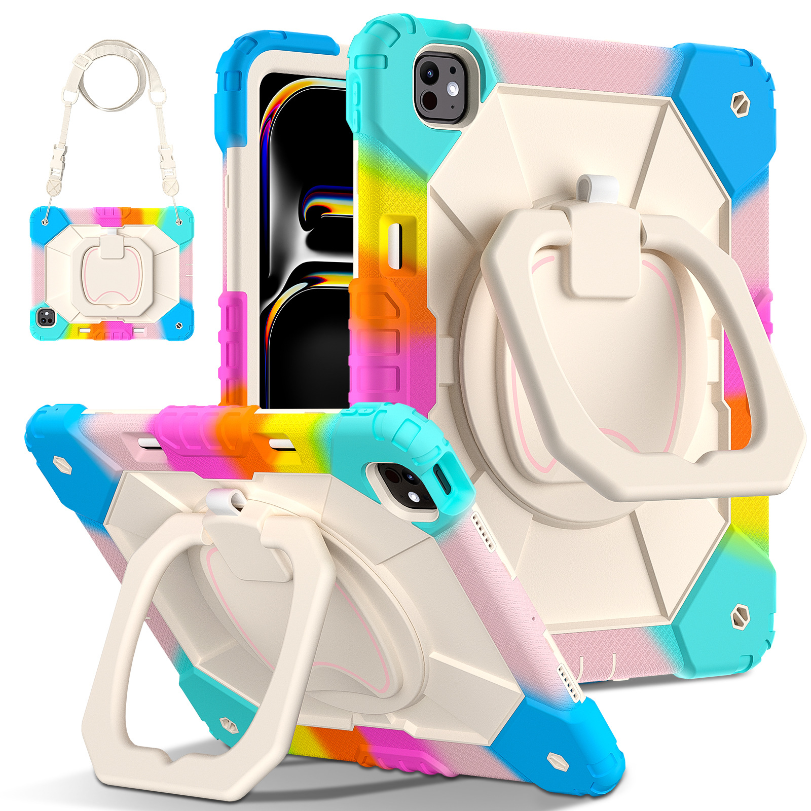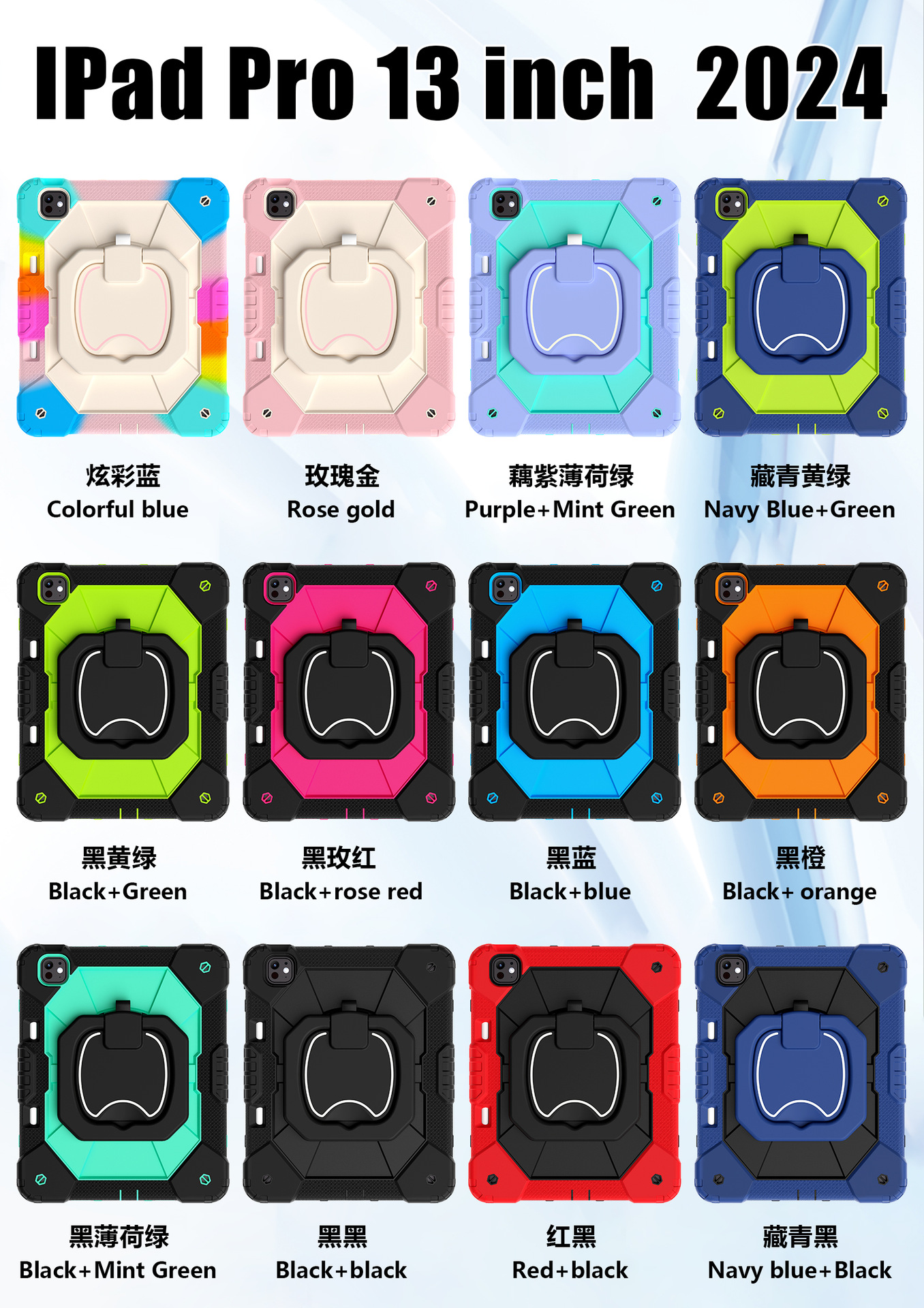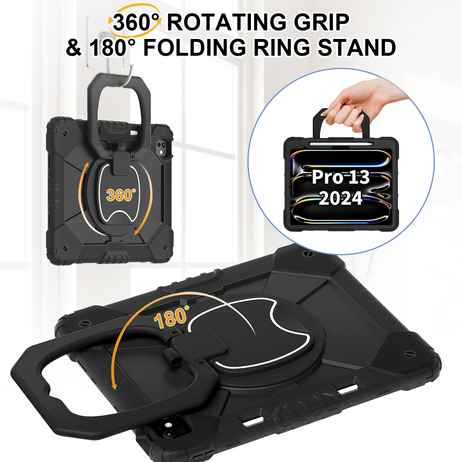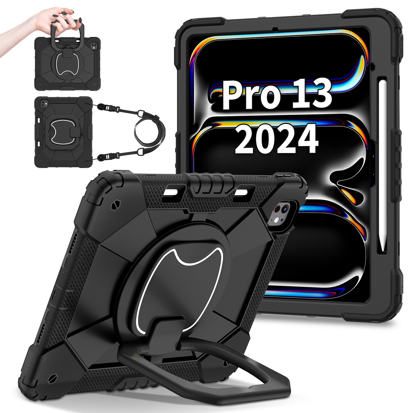 For iPad Pro 13 2024 Case iPad Air 13 2024 Silicone Case Three Anti-Rotary Stand protective Accessories