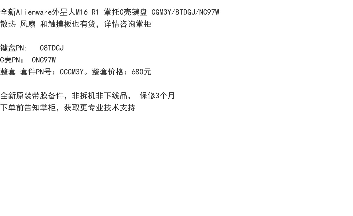 New Dell Alienware Alien M16 R1 Pocket C Case Keyboard CGM3Y/8TDGJ/NC97W