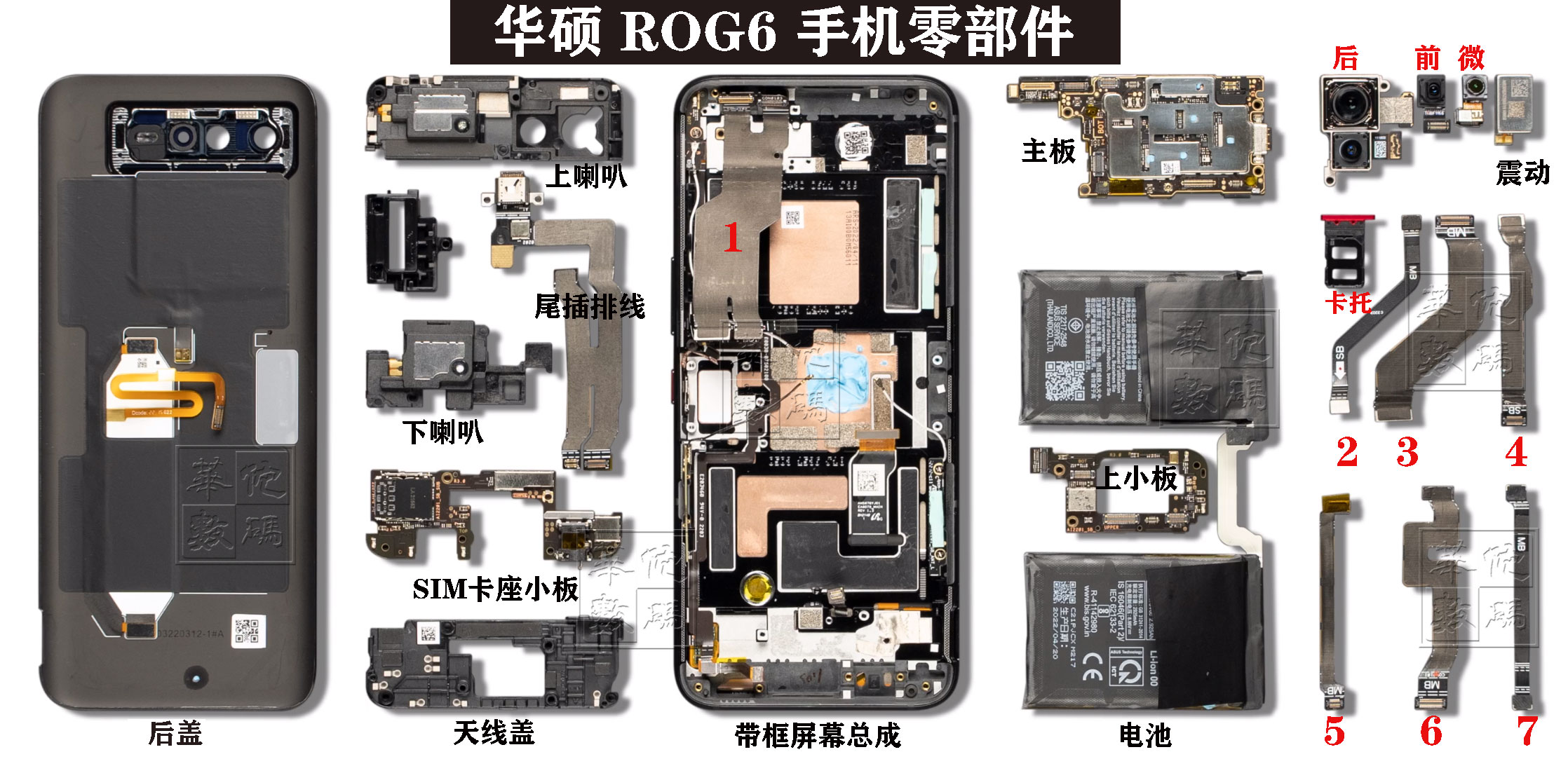 Rog 6 pro rear cover camera head boot row SIM card seat earphone small board speaker vibration tail plug cable