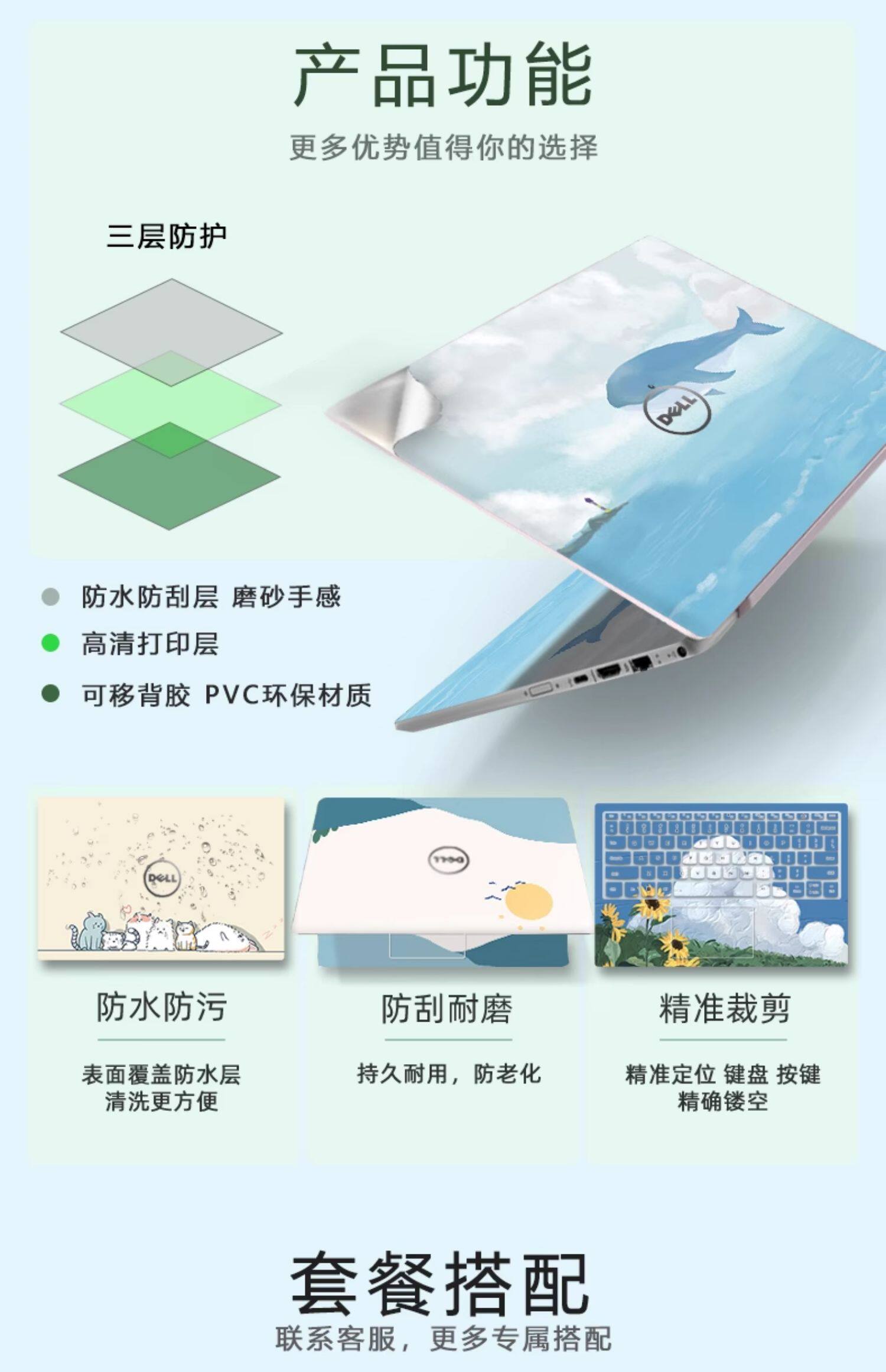 (Shipping fee not include)Dell灵越5000贴纸inspiron15-5557 5493 5405 5509 5502笔记本电脑贴膜5590 5391 5490 5585 5498保护膜全套
