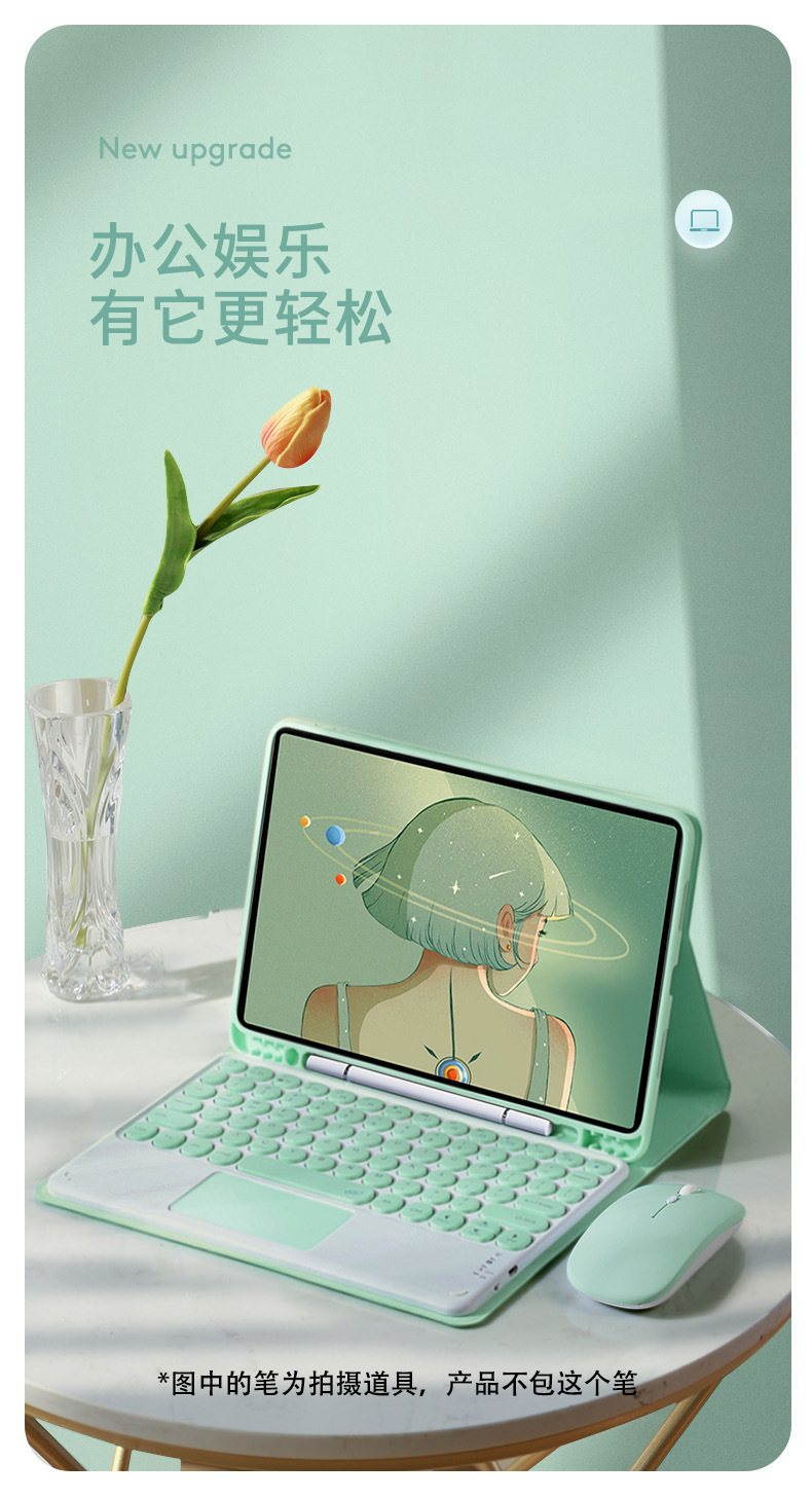 Suitable for Samsung T Tablet A8L Bluetooth Keyboard Case S9 FE Round Cap S6lite Touch Keyboard A9 + Case S8protective Accessories