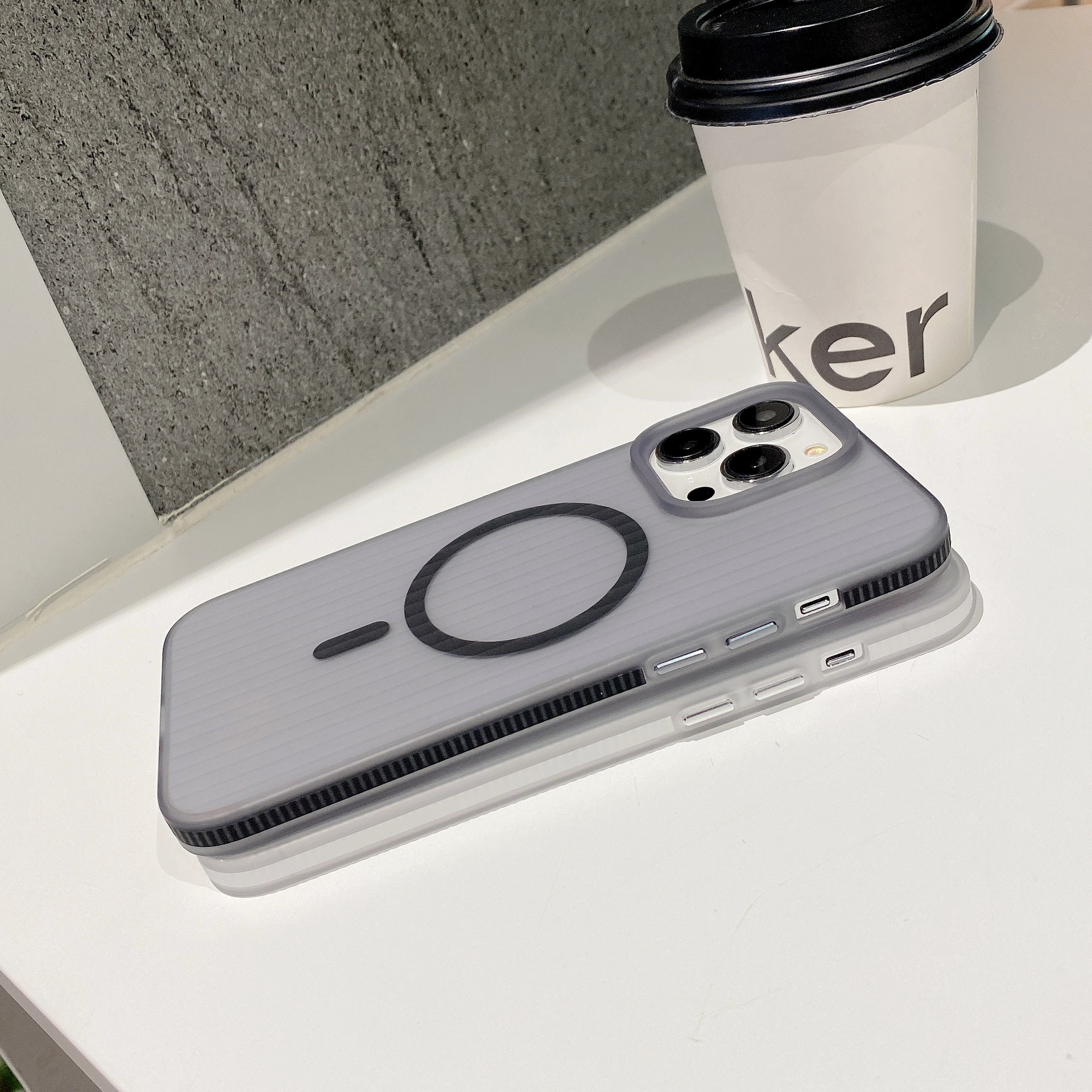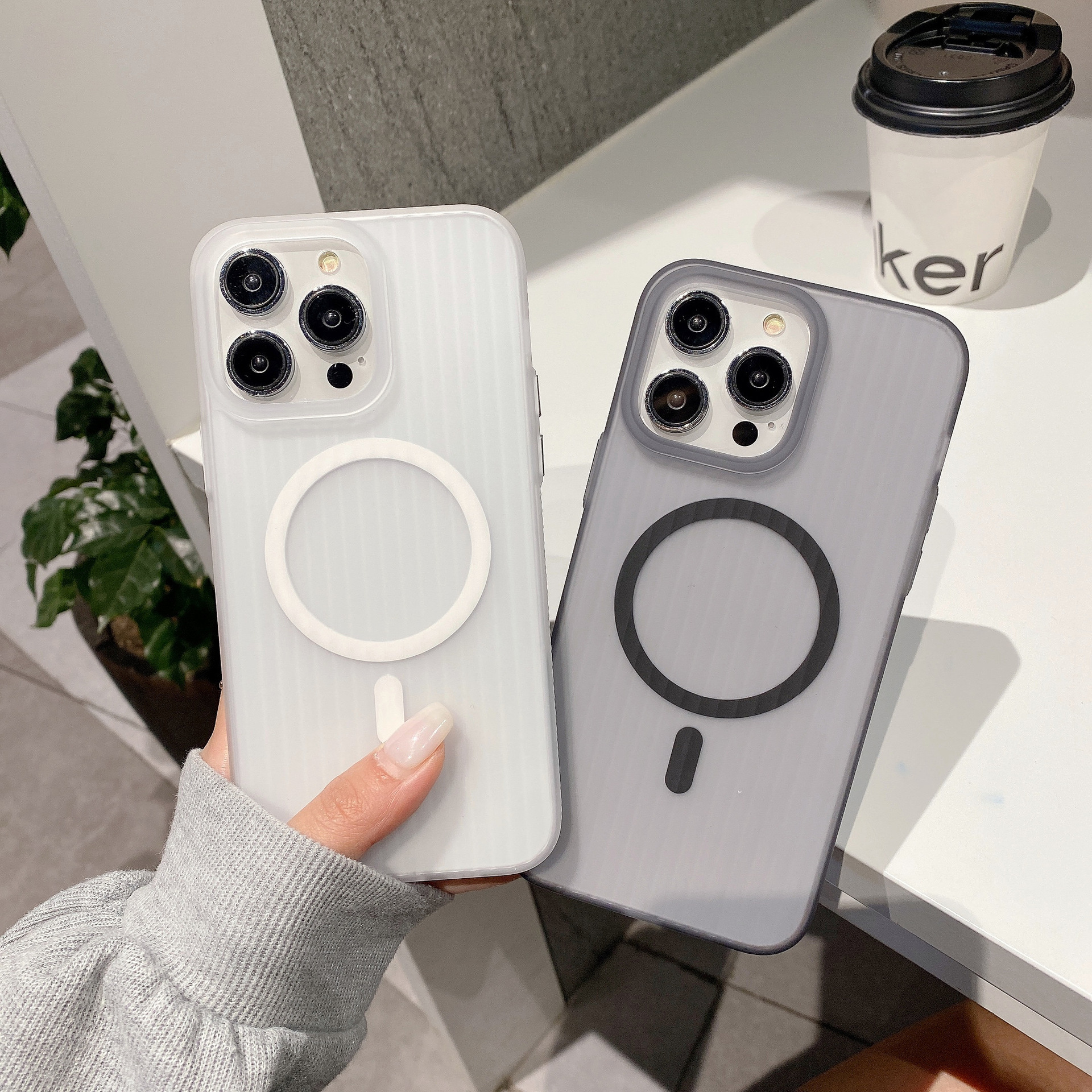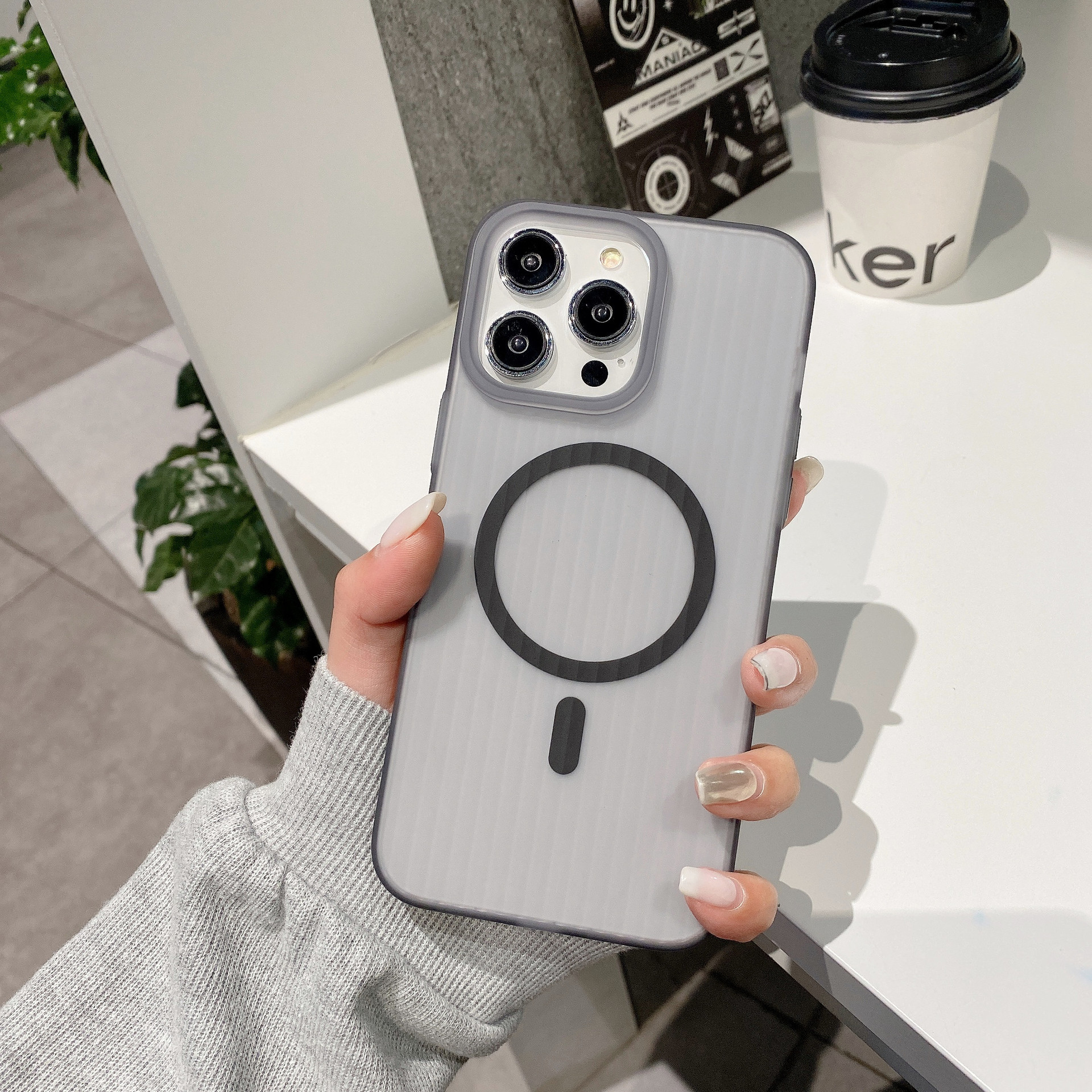 Accessories Corrugated ice mist case for iPhone15 mobile phone case, grating pattern non-slip edge, Apple 14 magnetic protective case 13 hard