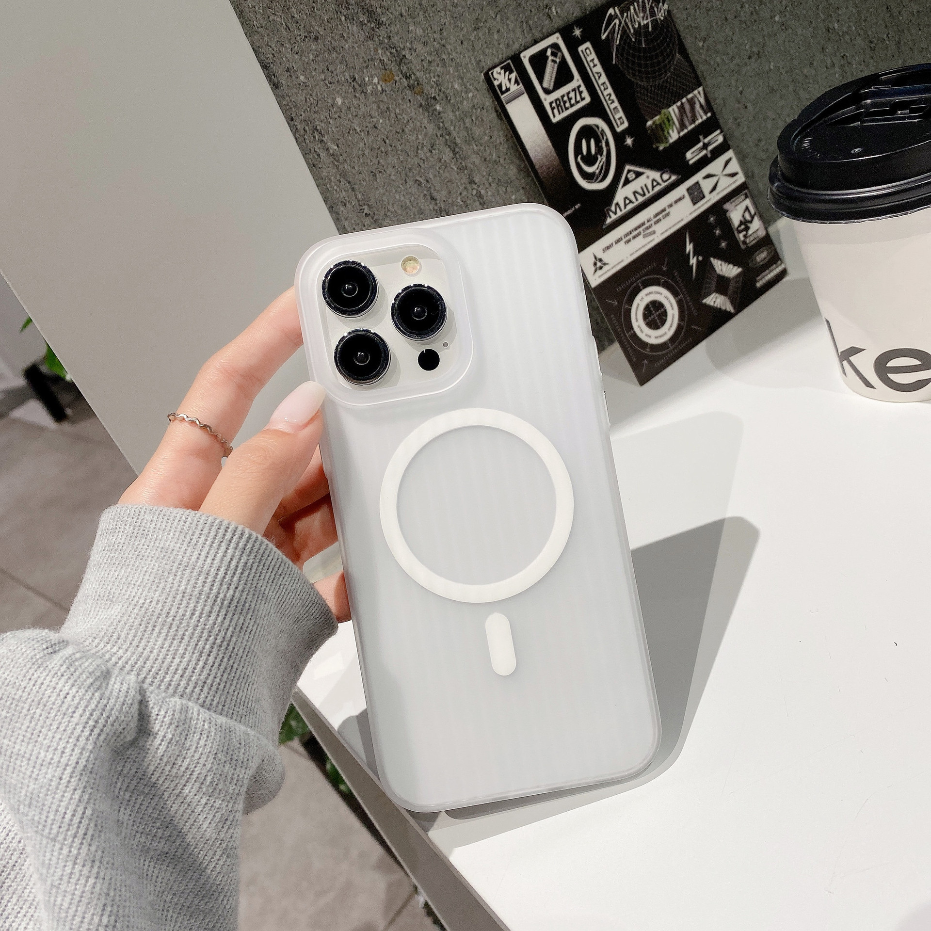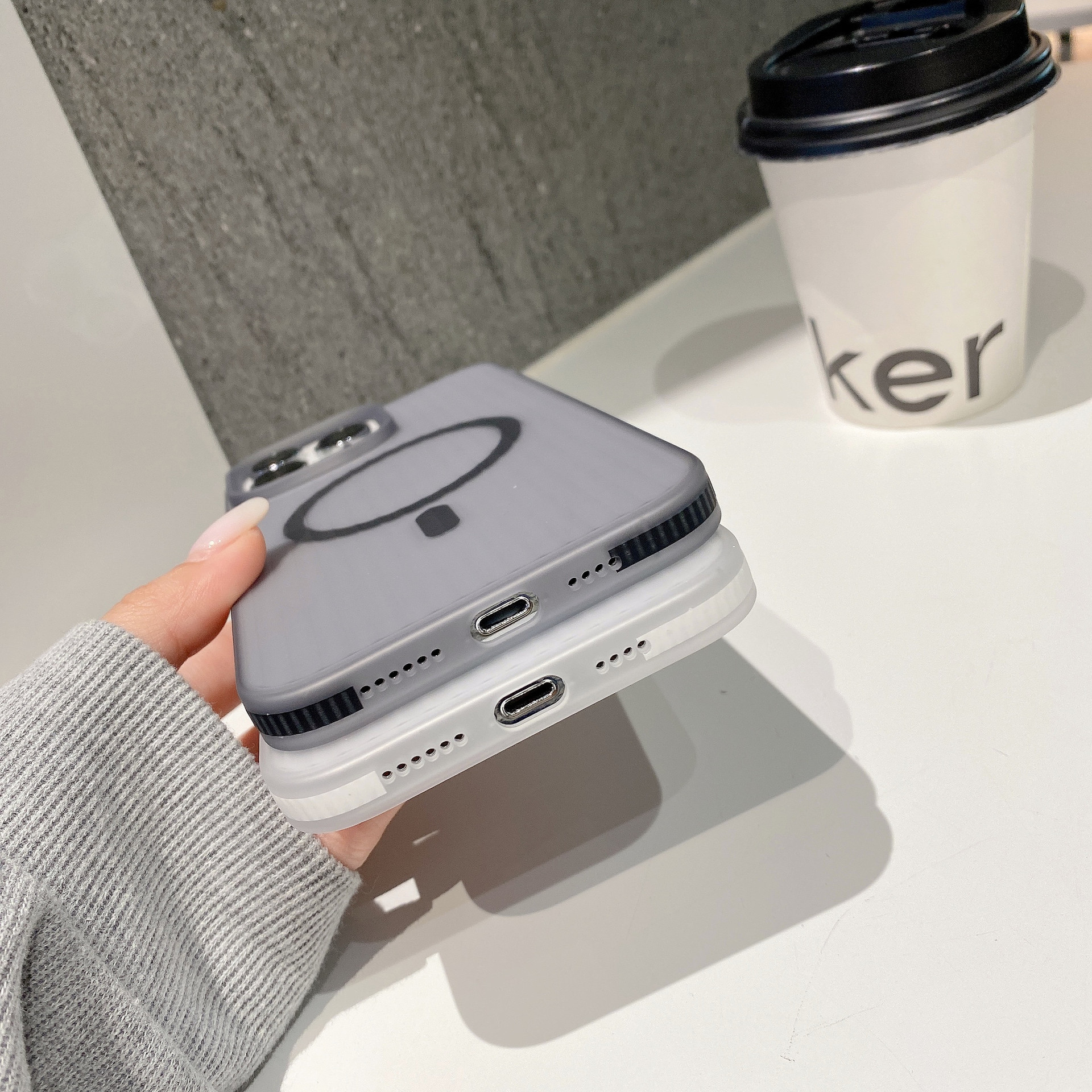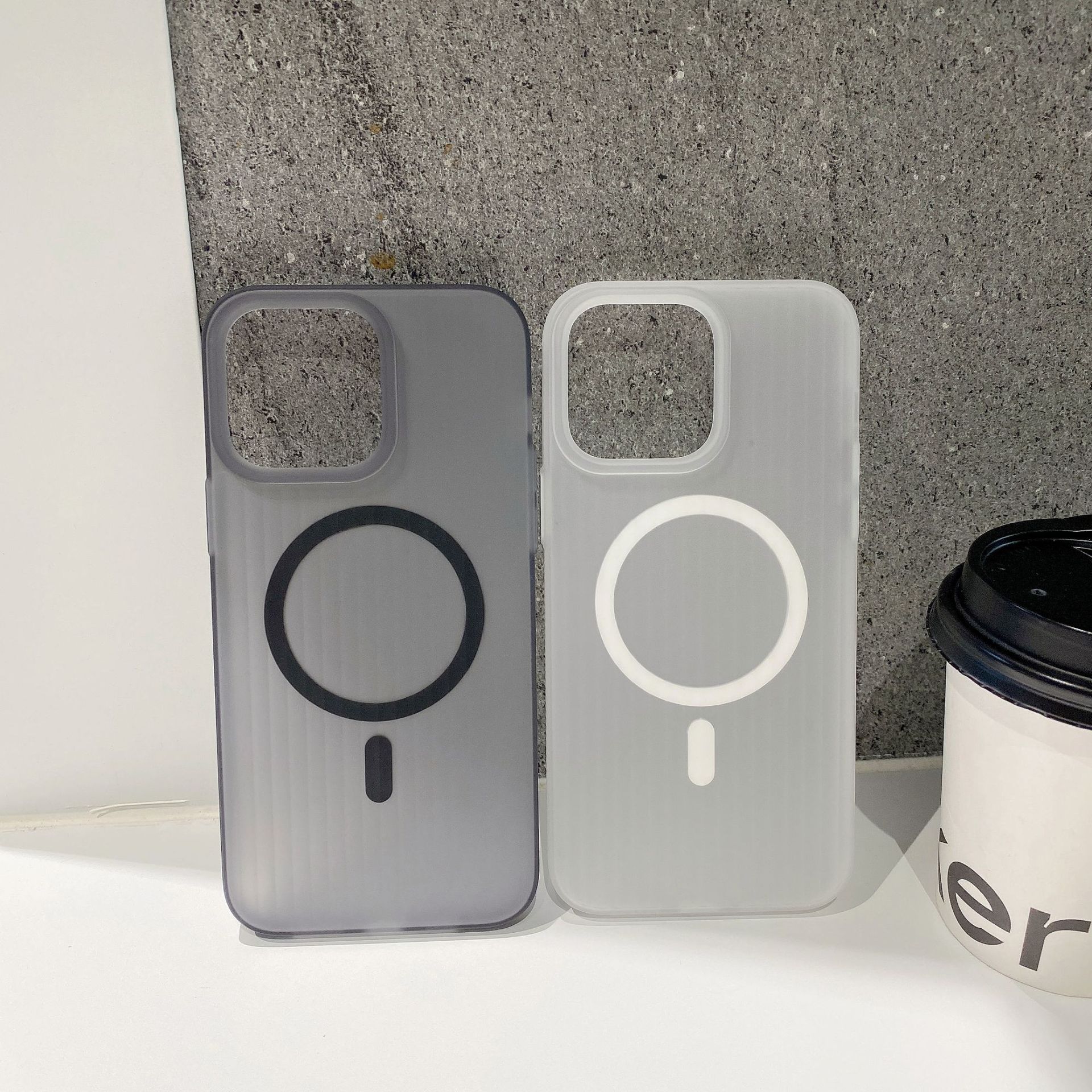 Accessories Corrugated ice mist case for iPhone15 mobile phone case, grating pattern non-slip edge, Apple 14 magnetic protective case 13 hard
