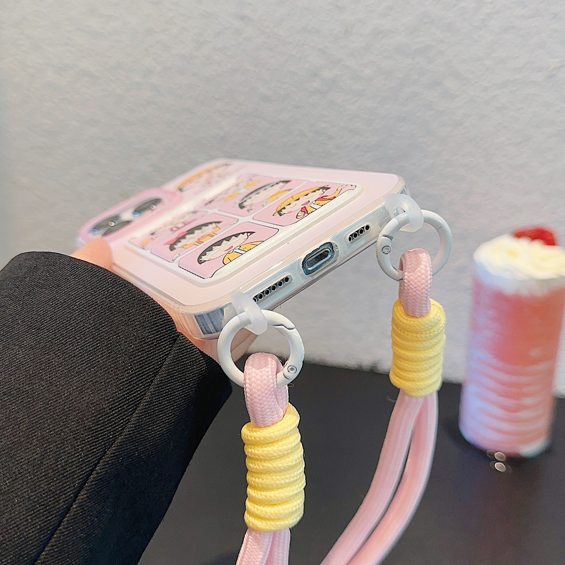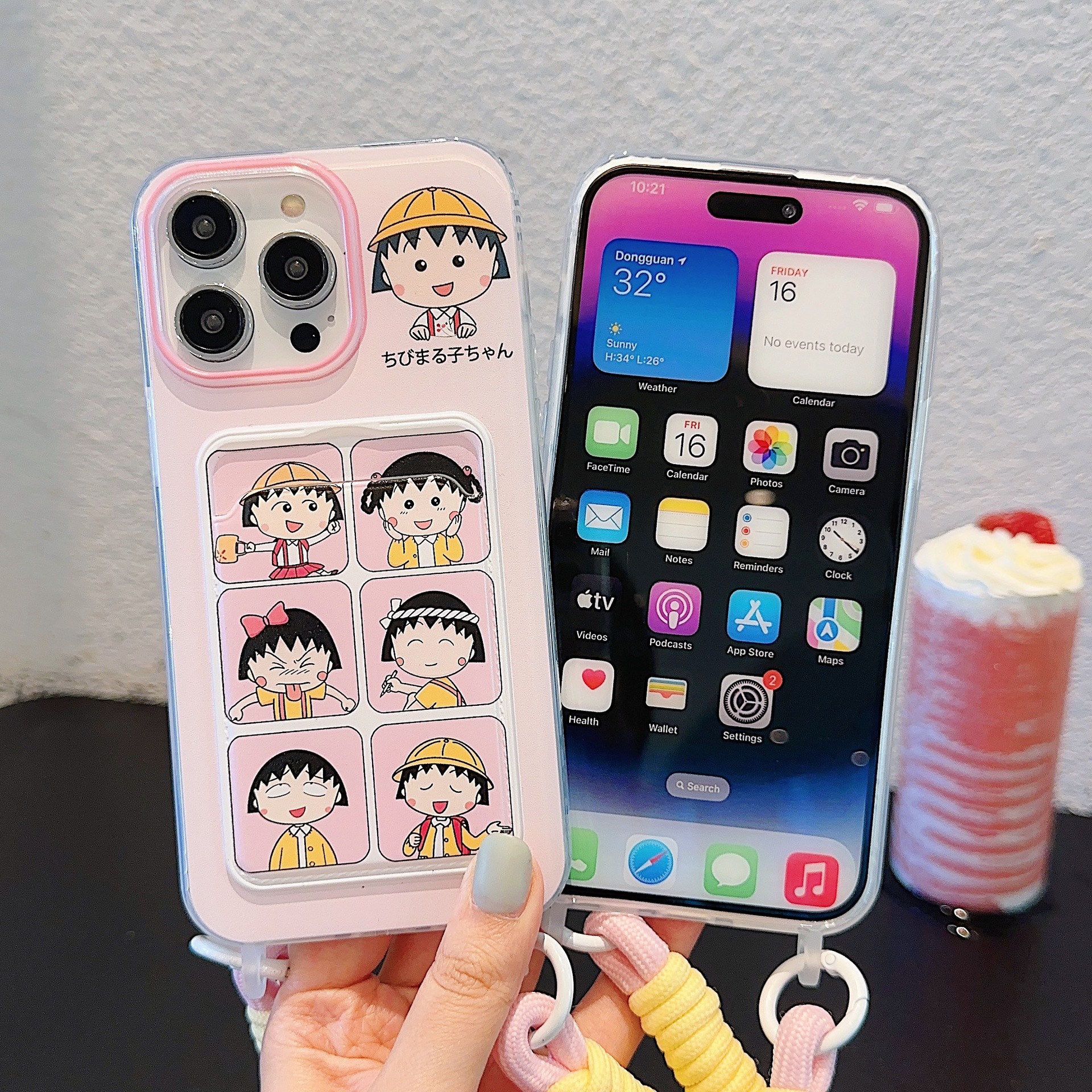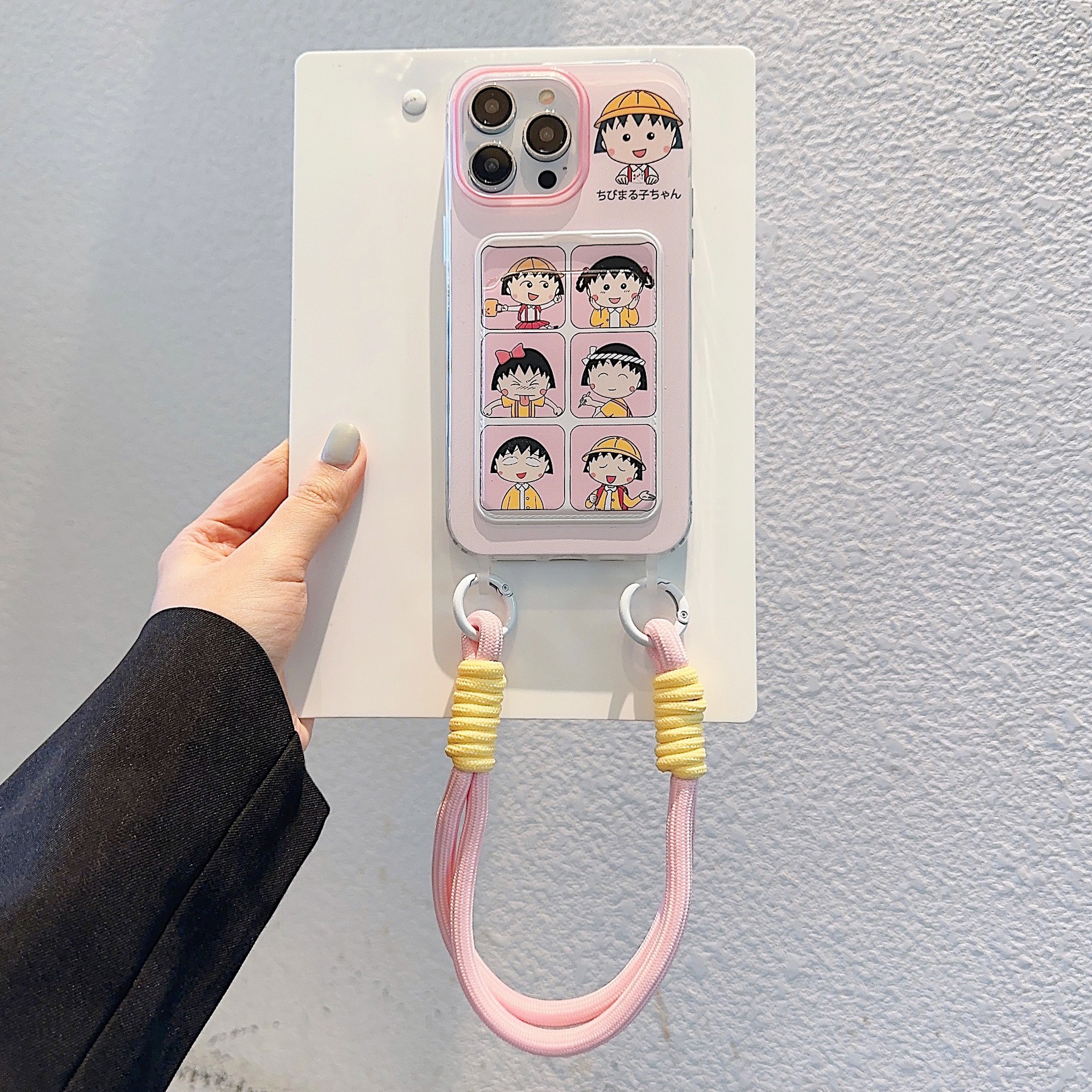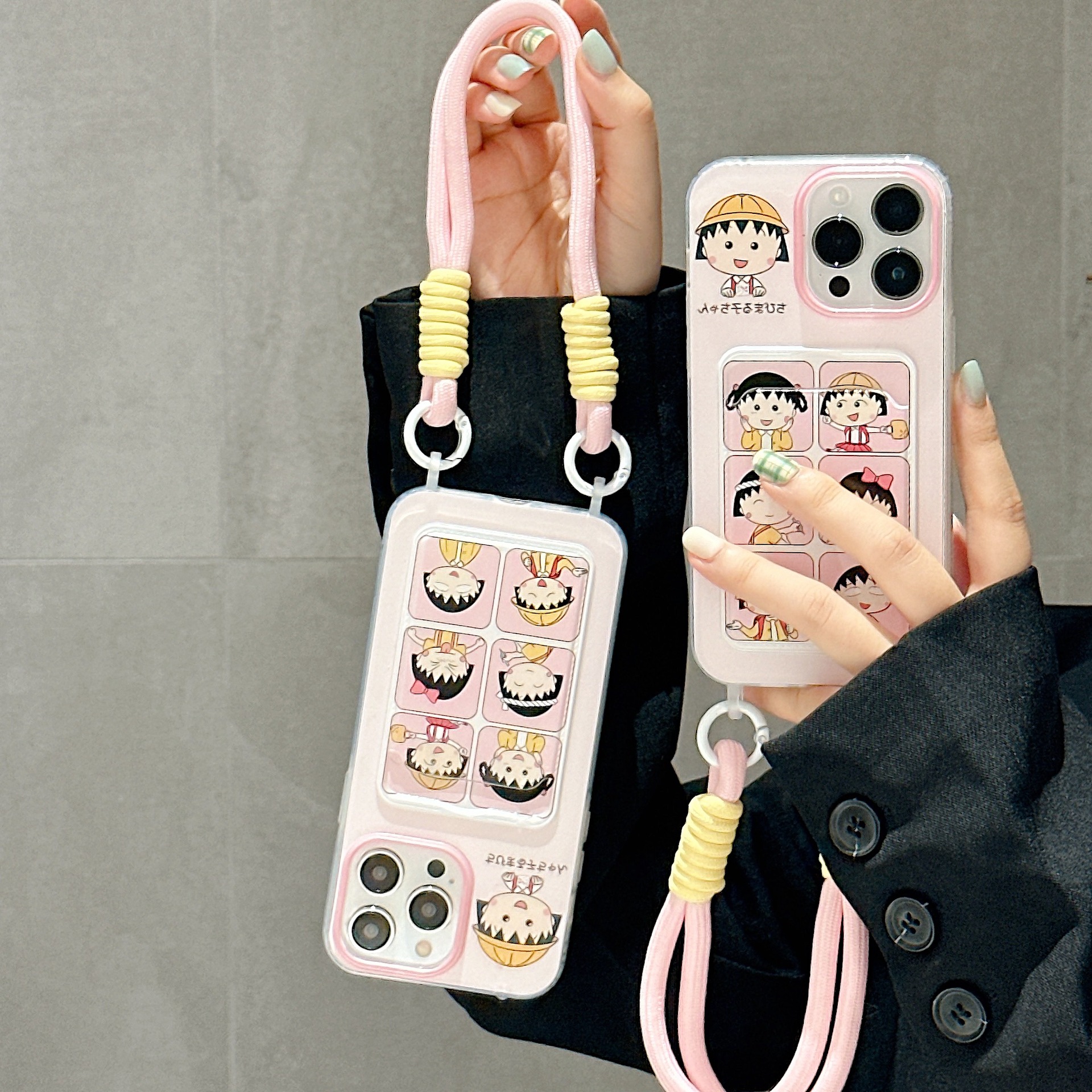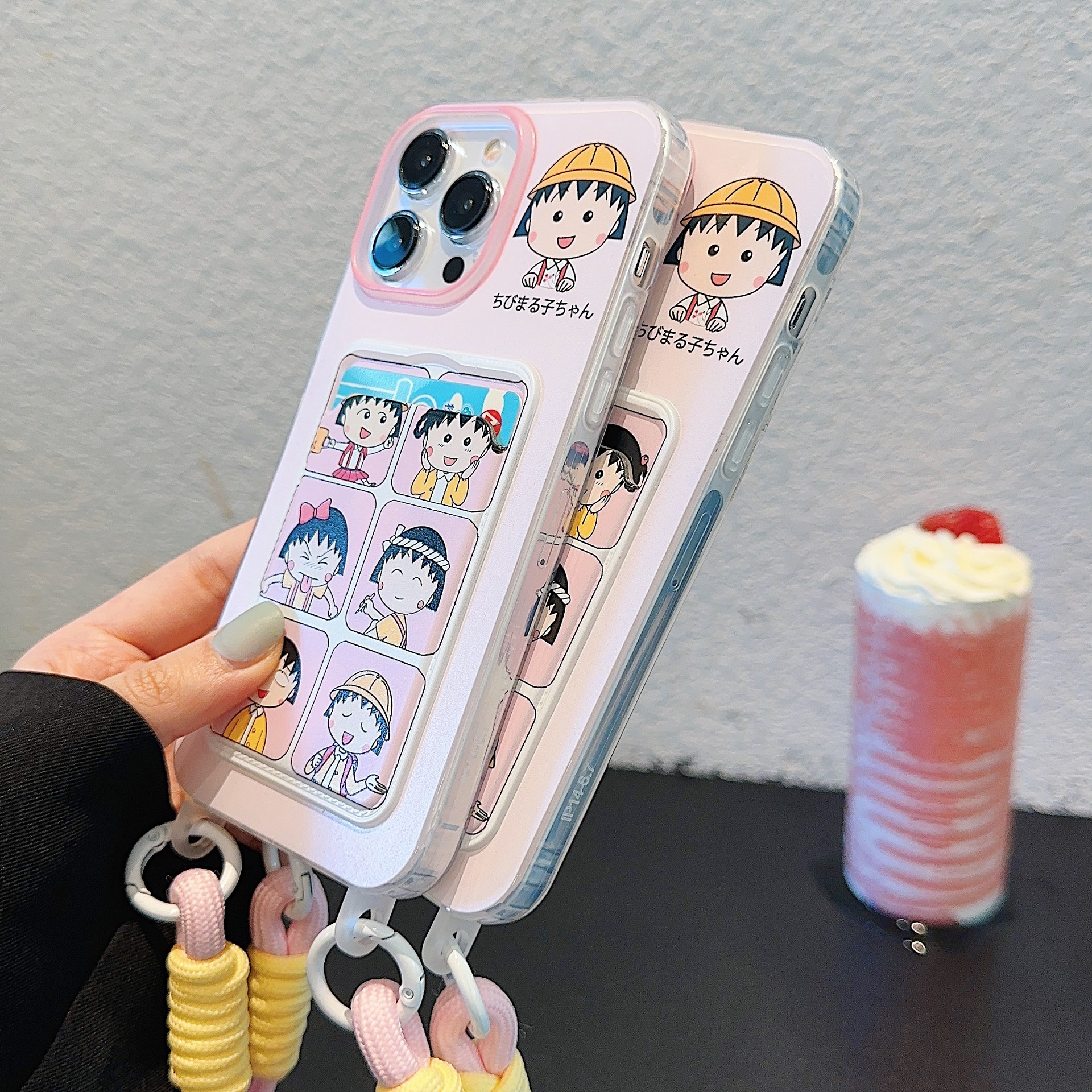 Accessories for Apple 15iPhone14Pro cute 13promax cartoon card bag lanyard cherry balls soft shell