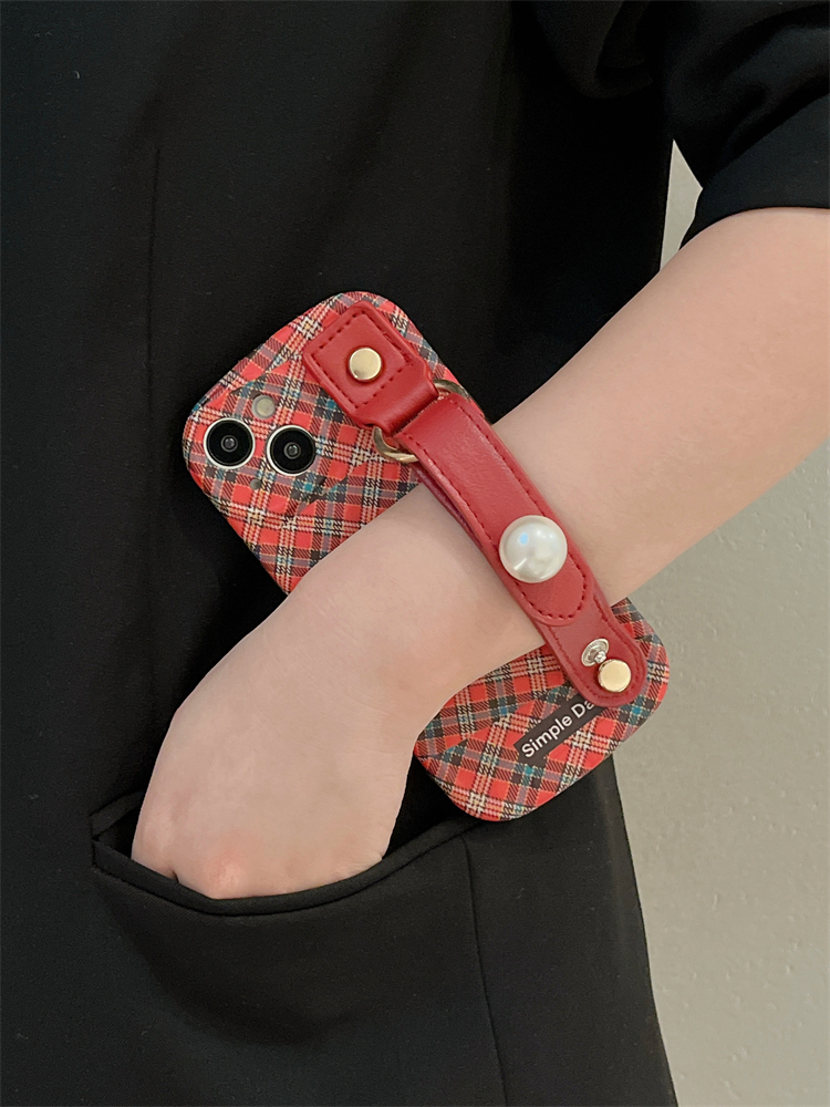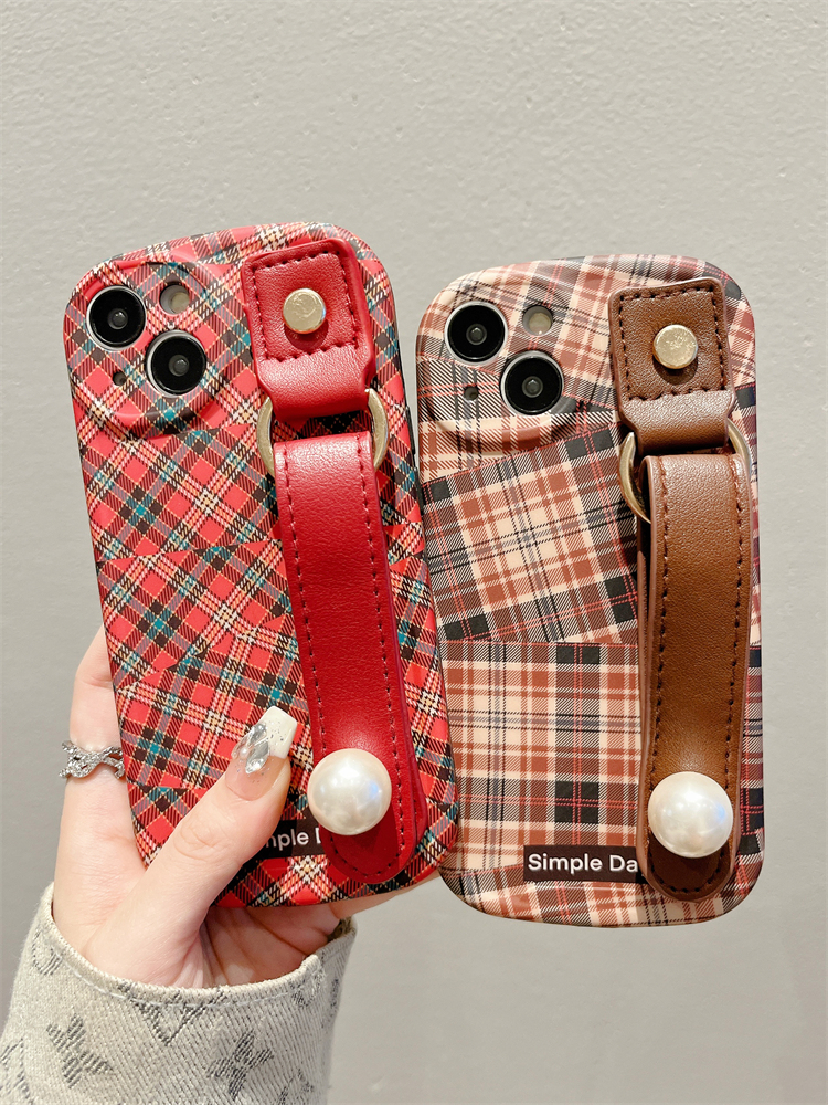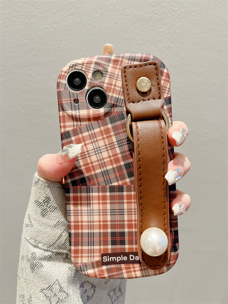Accessories for Apple 15promax mobile phone case splicing plaid wrist strap new iphone15pro silicone case