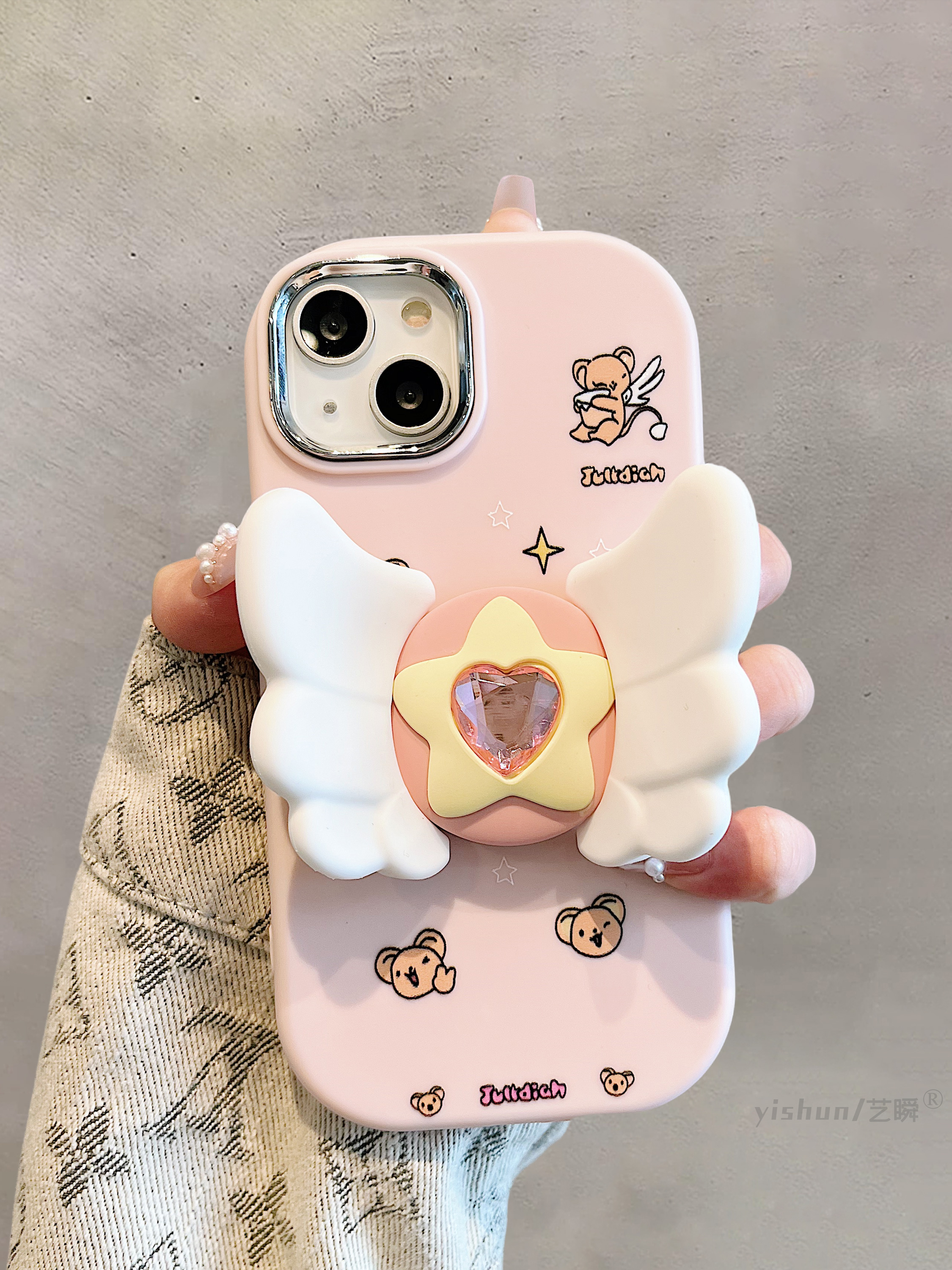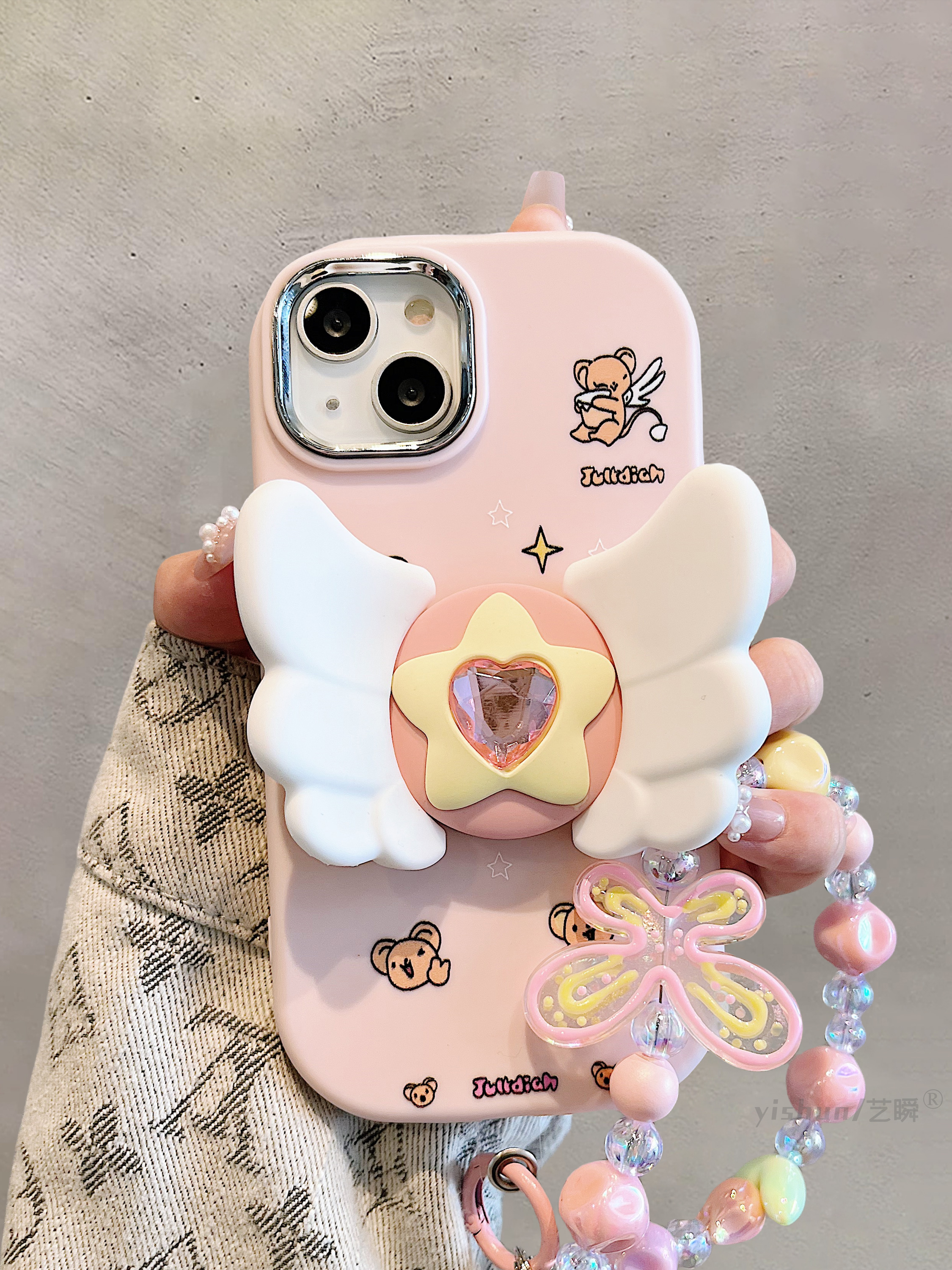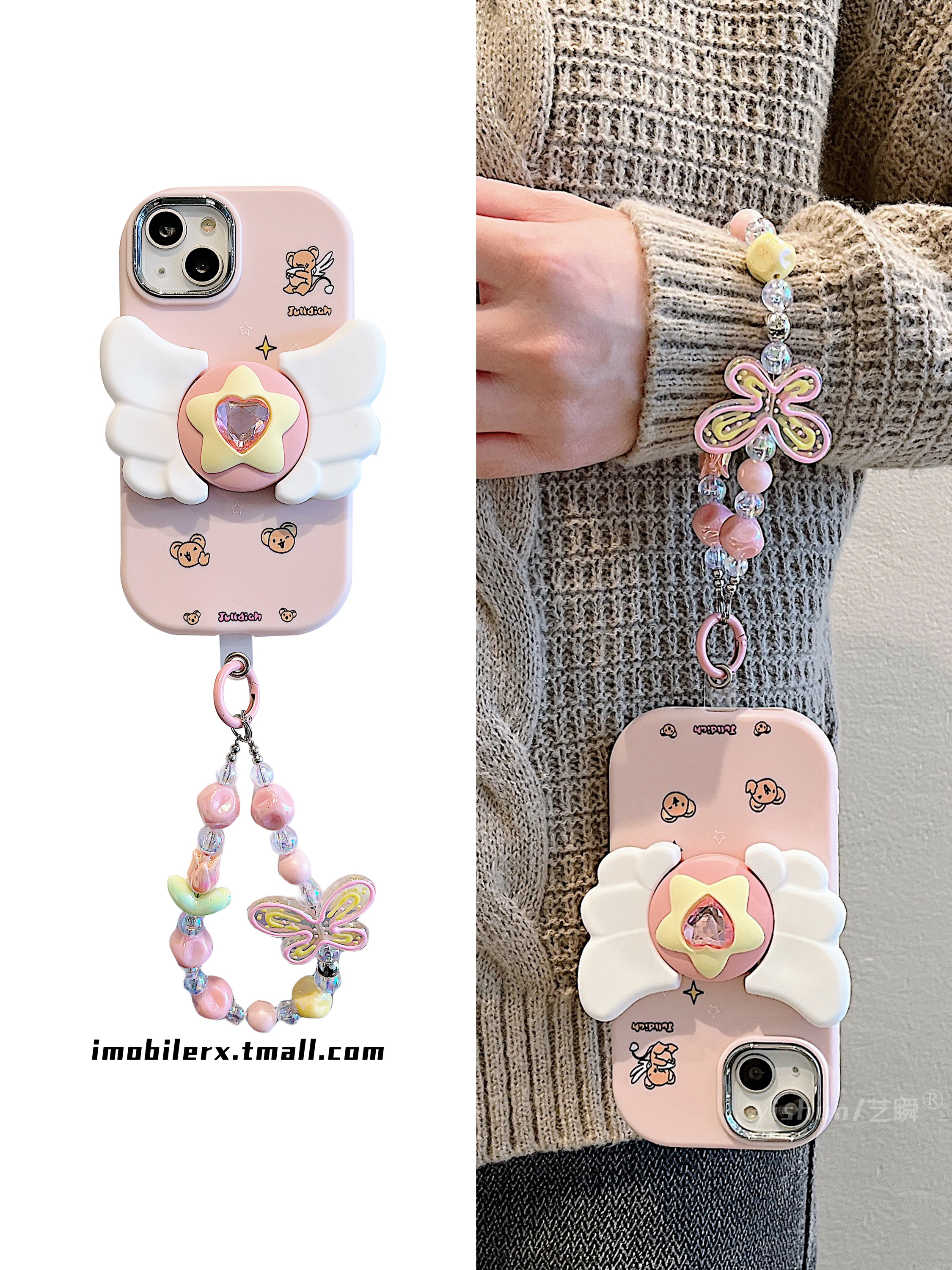 Accessories for Apple 15ProMax mobile phone protective case iPhone14 girl heart cartoon cute angel wing bracket