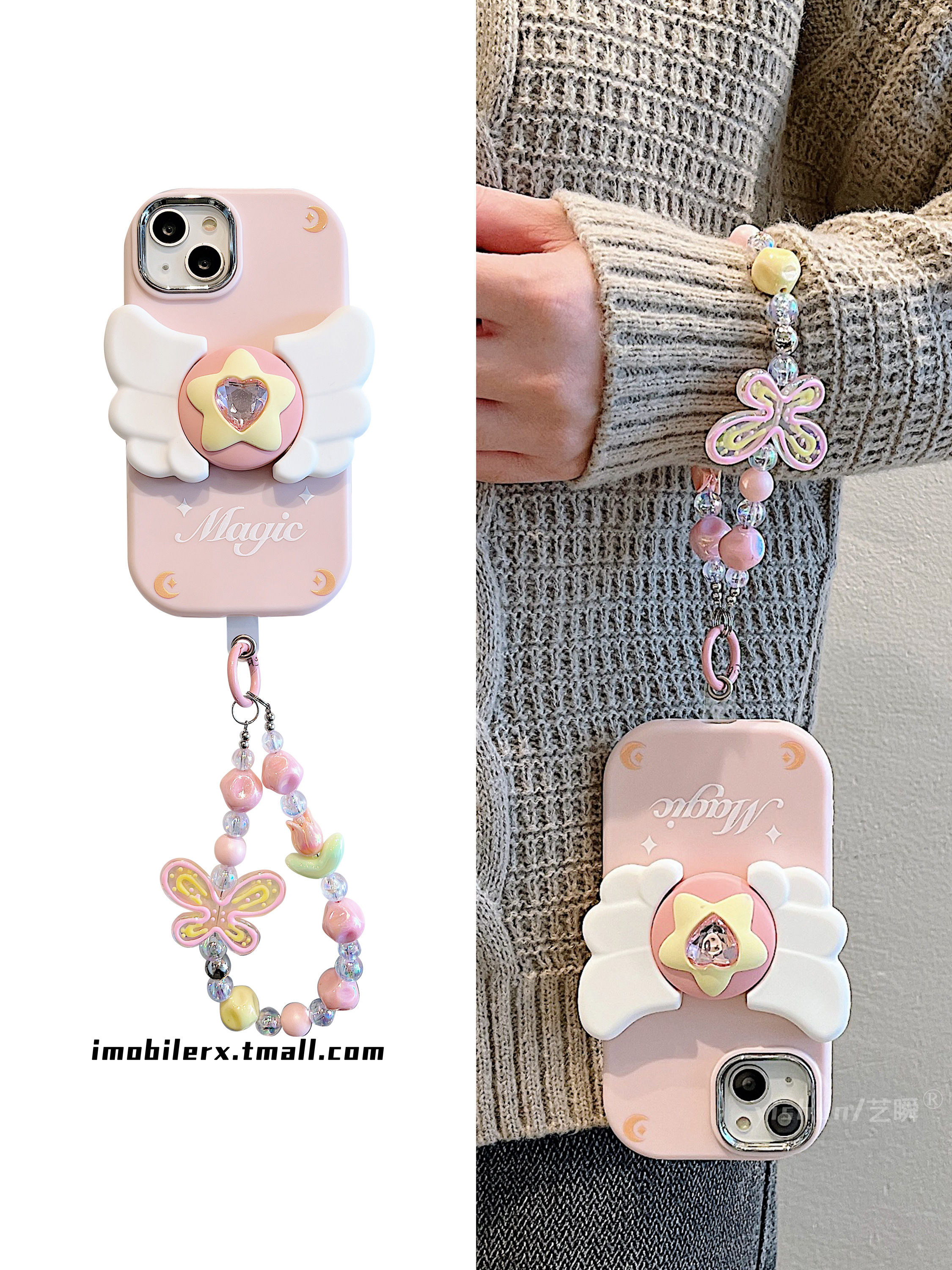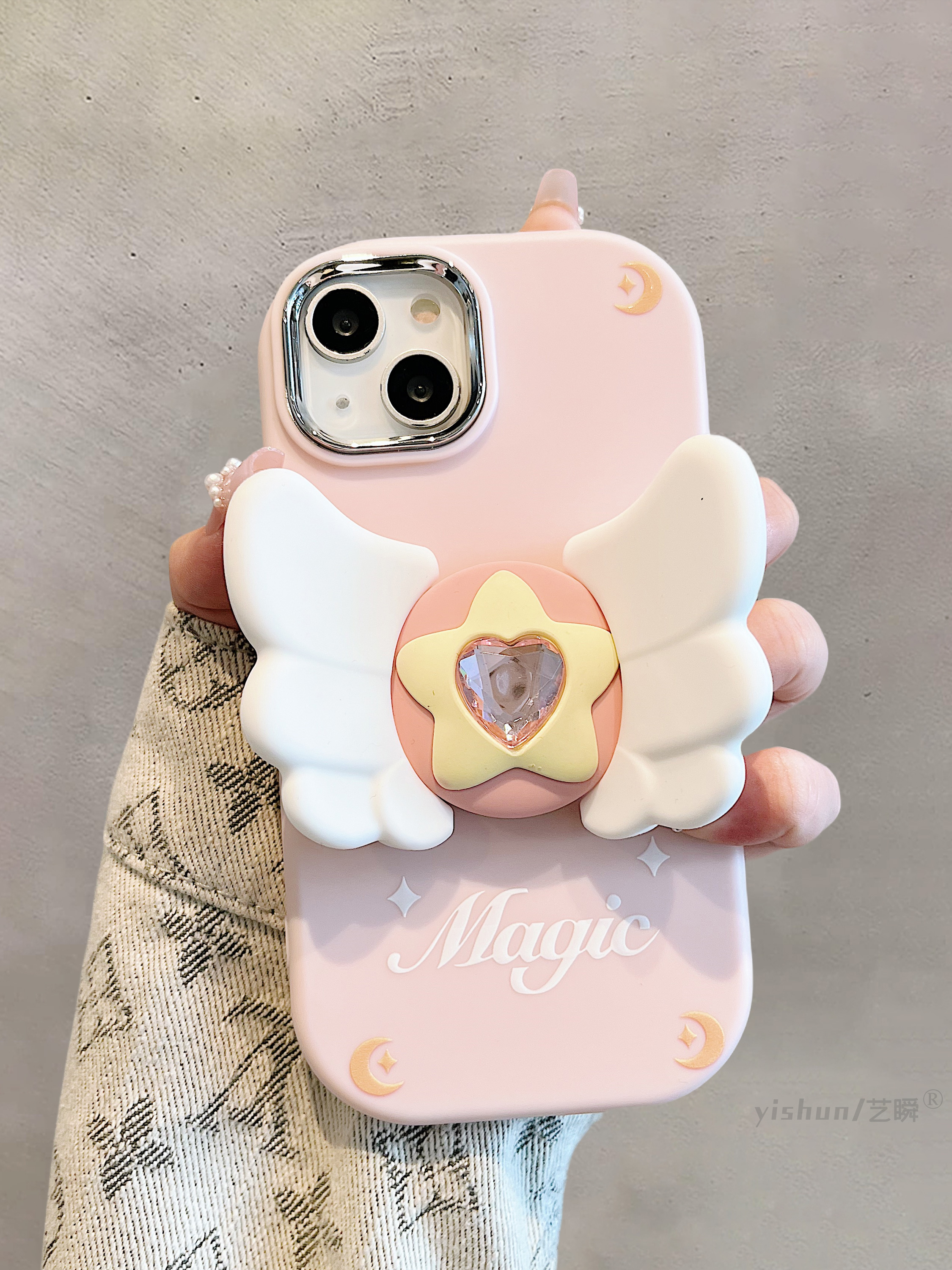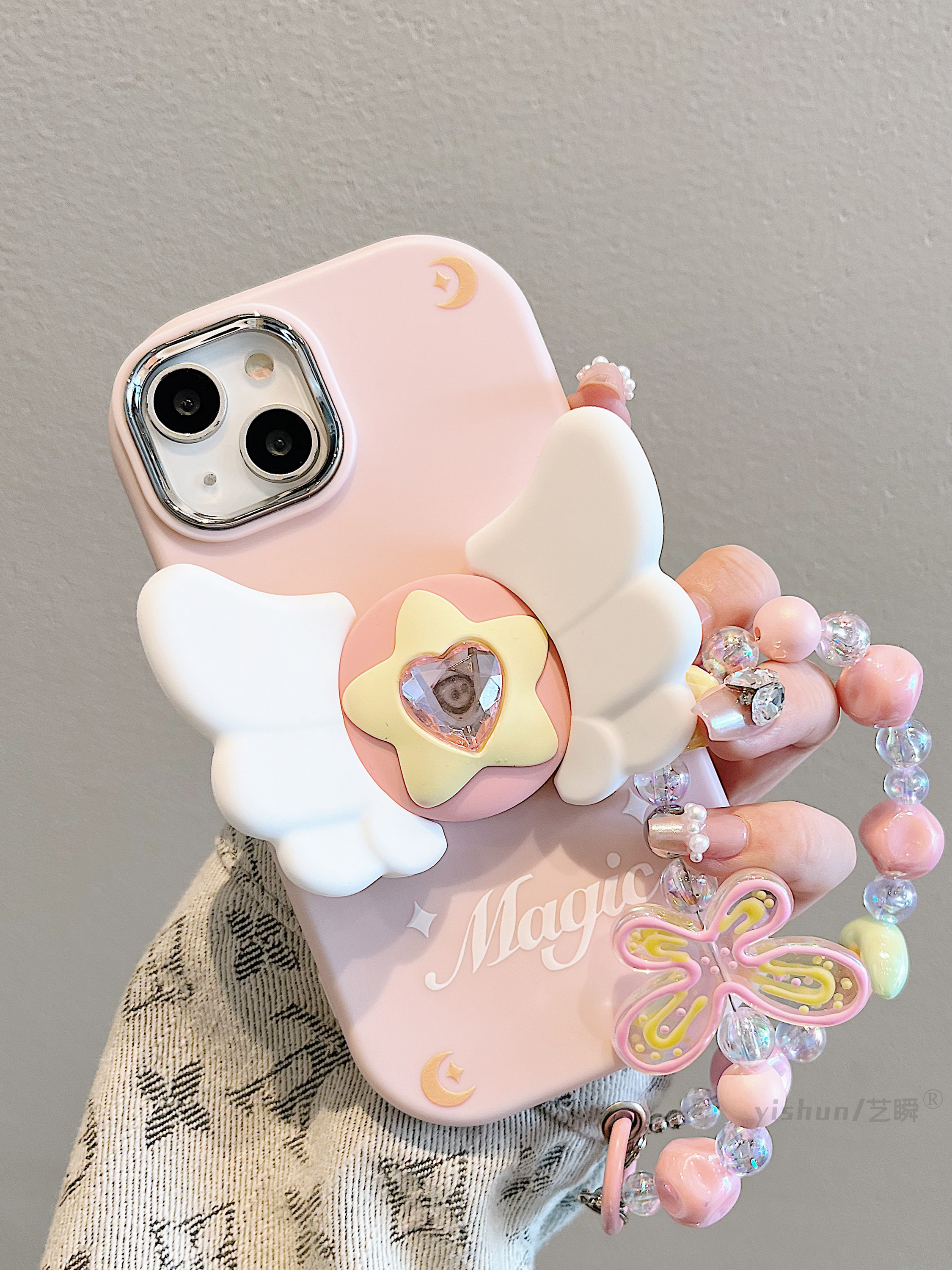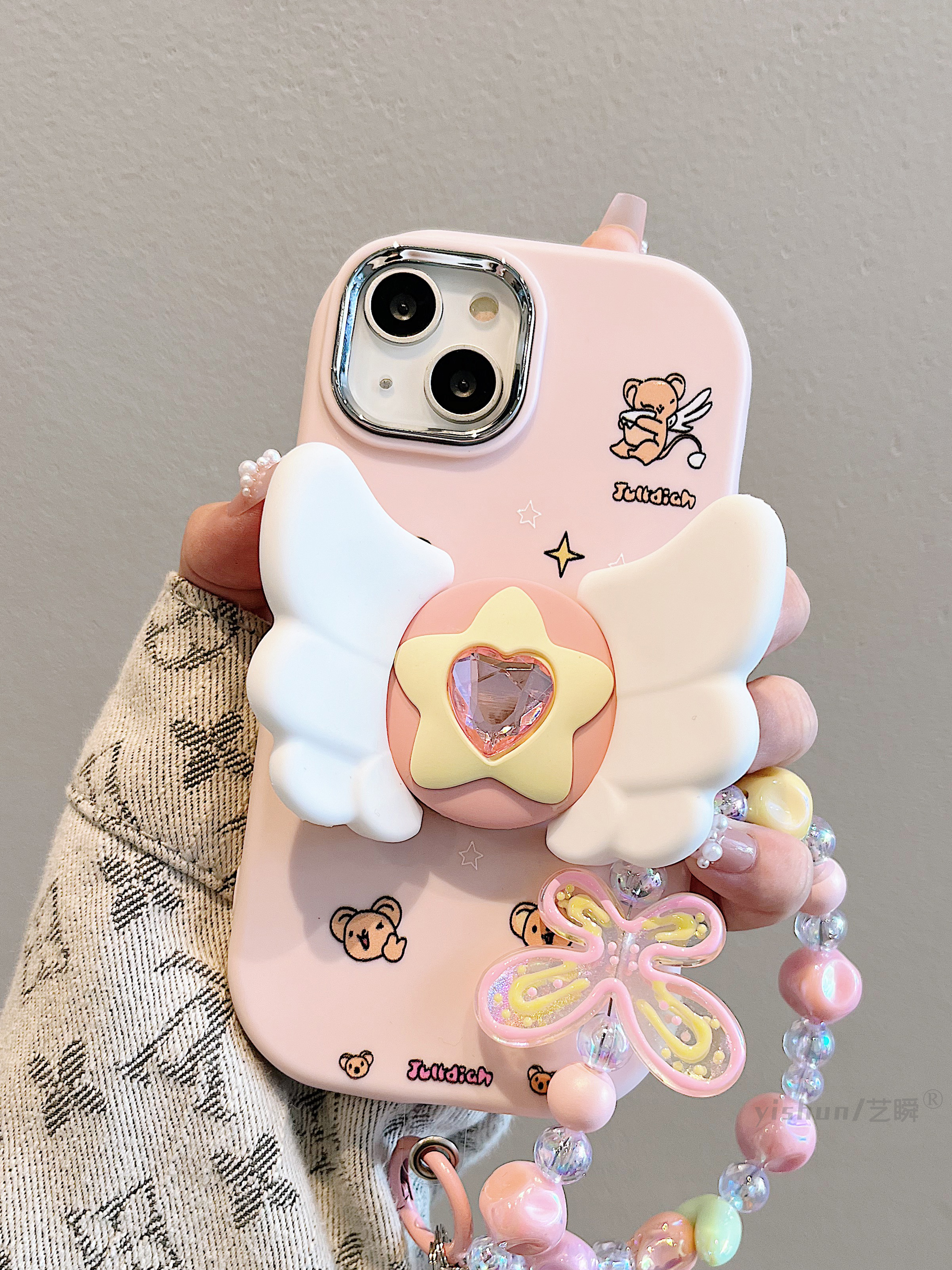 Accessories for Apple 15ProMax mobile phone protective case iPhone14 girl heart cartoon cute angel wing bracket