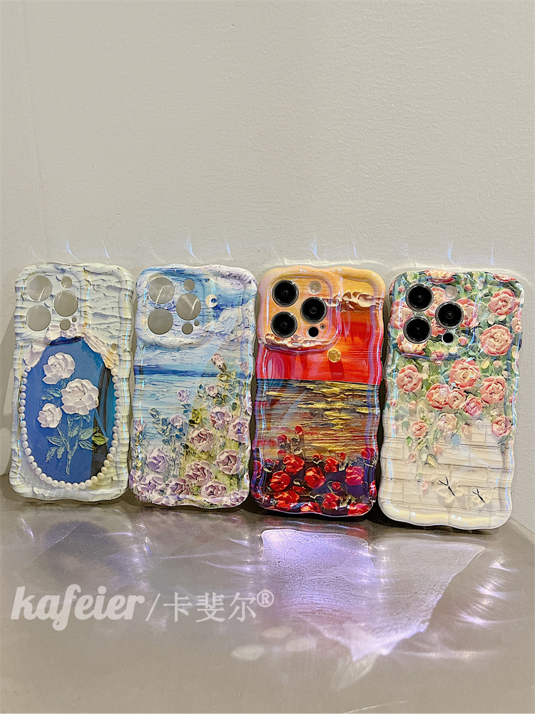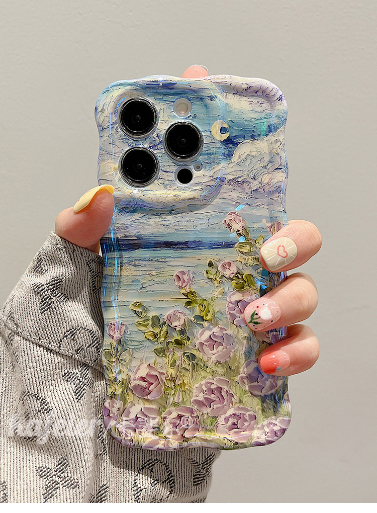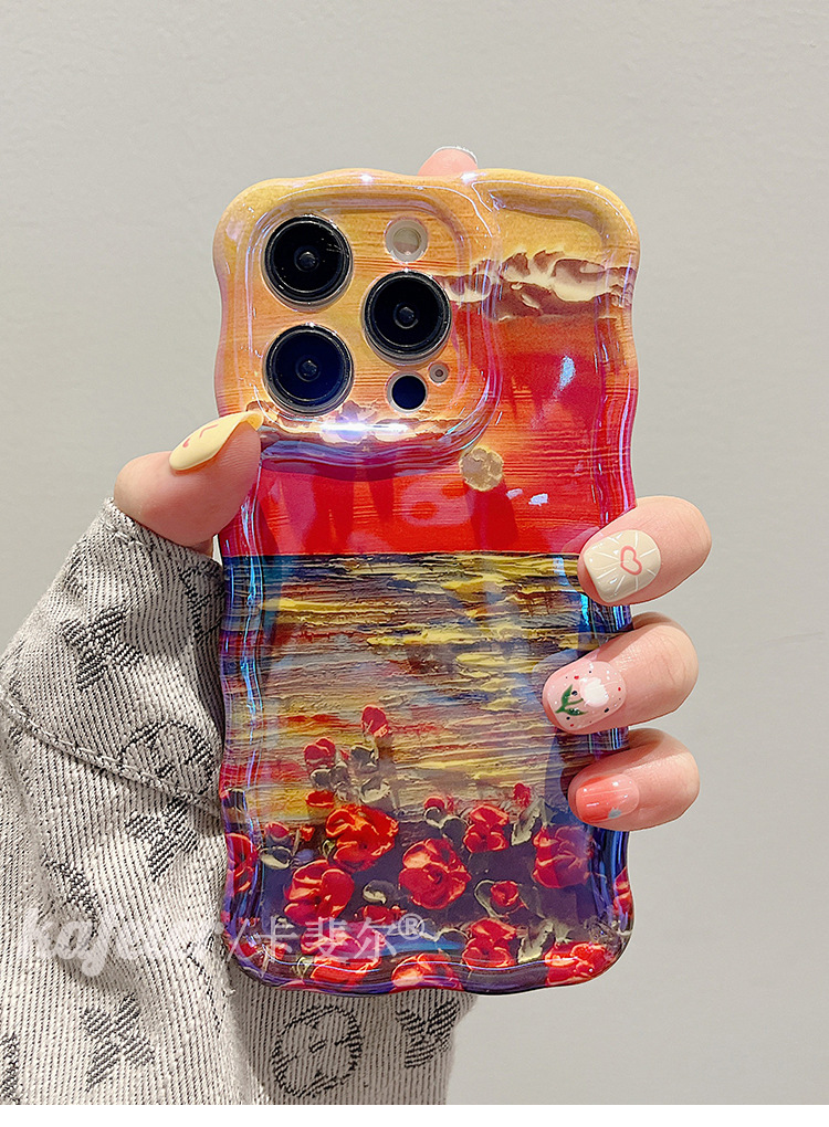Accessories for high-end aesthetic art oil painting sunset flower iphone14pro max mobile phone case apple 15 new