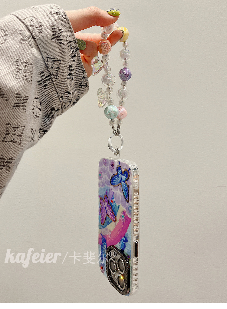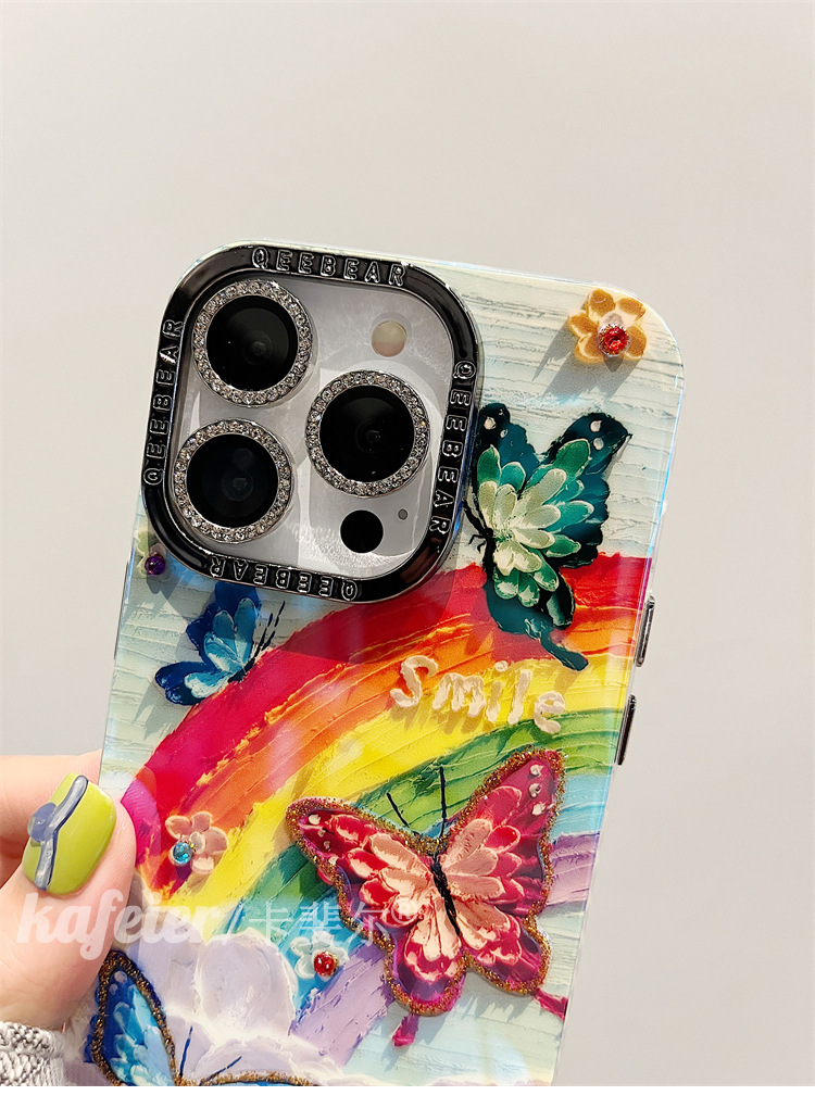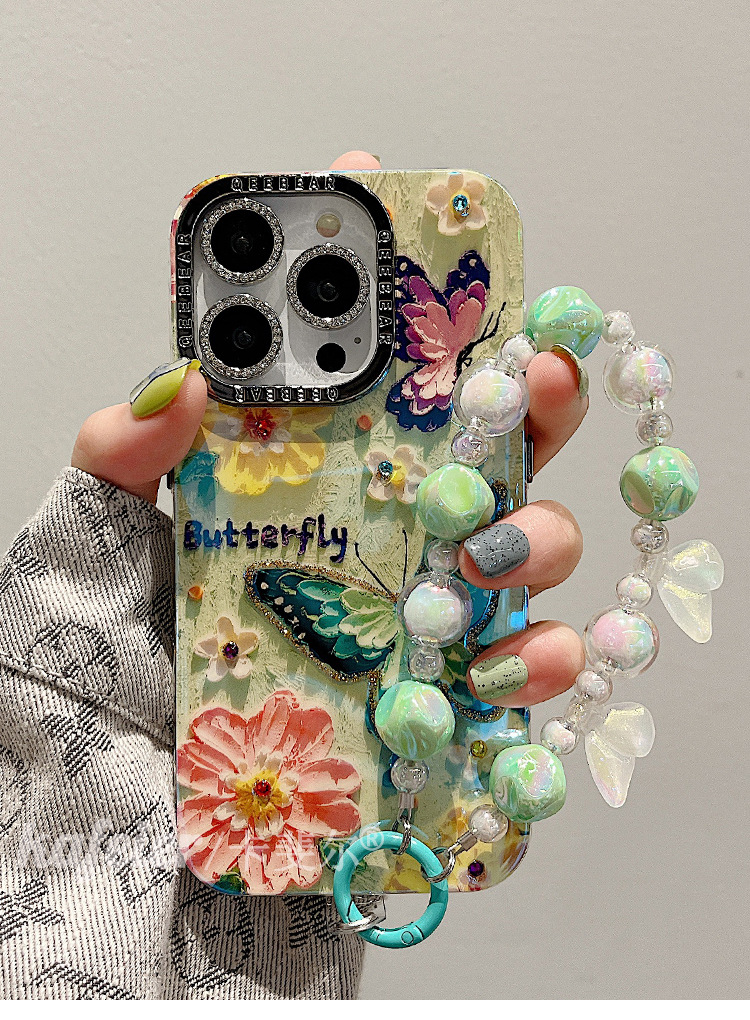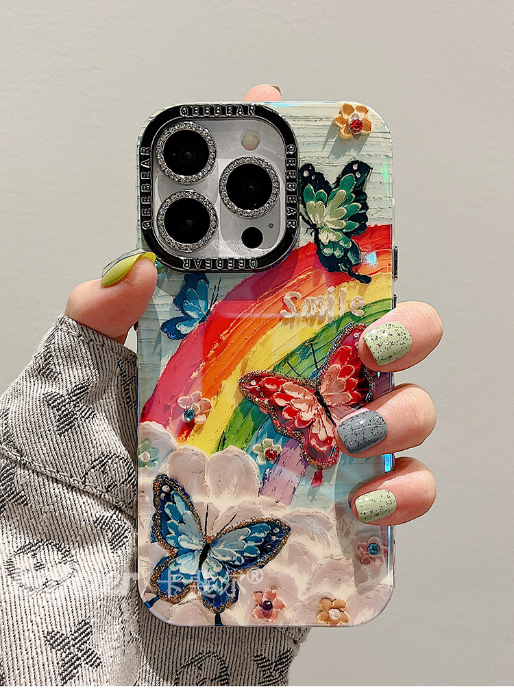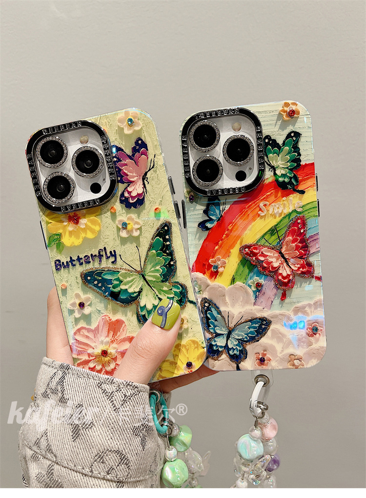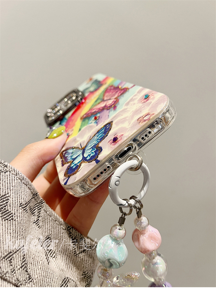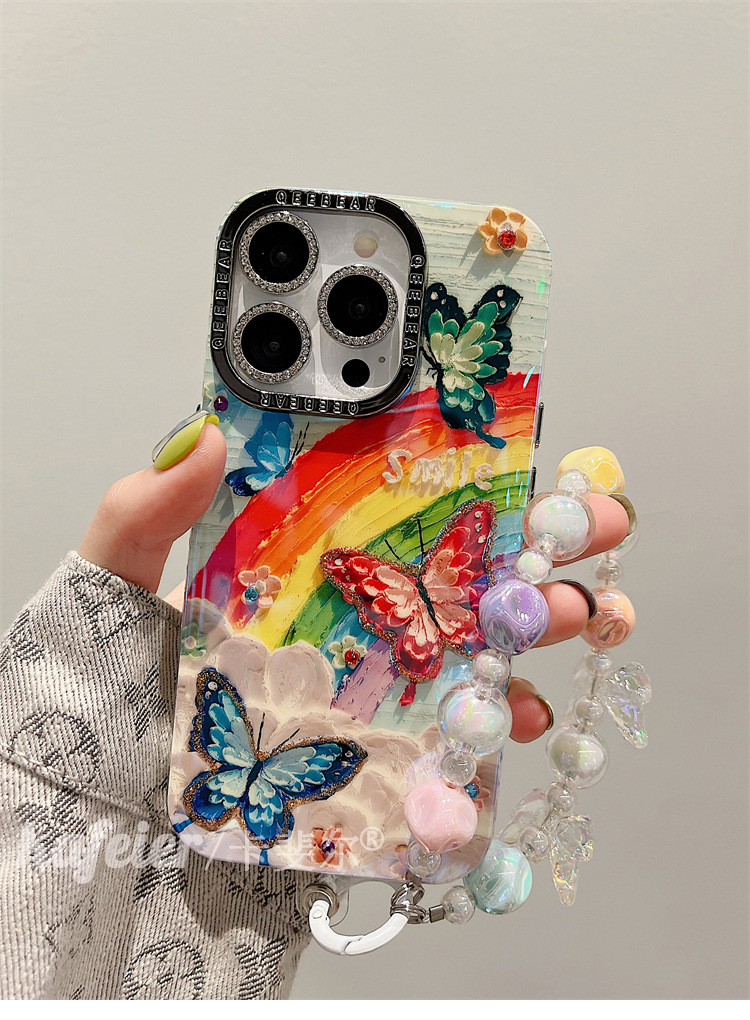 Accessories for premium oil painting rainbow butterfly flower bracelet iphone15pro max mobile phone case apple 14 new