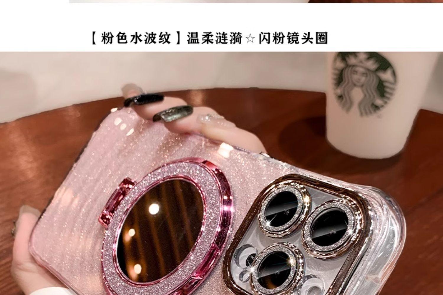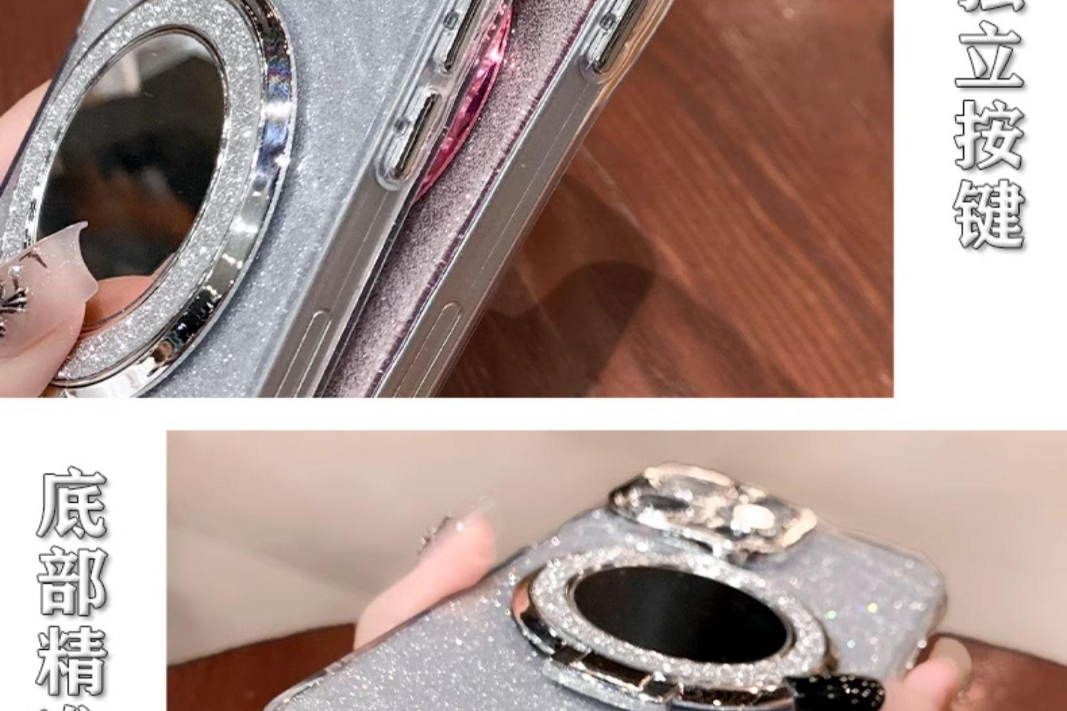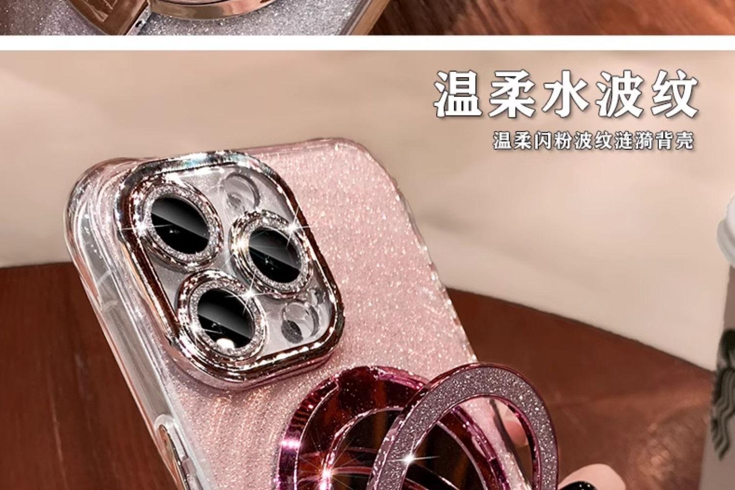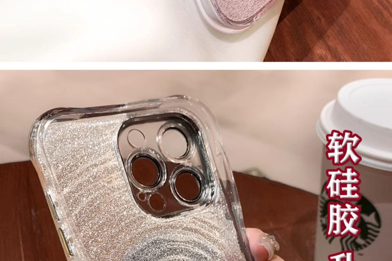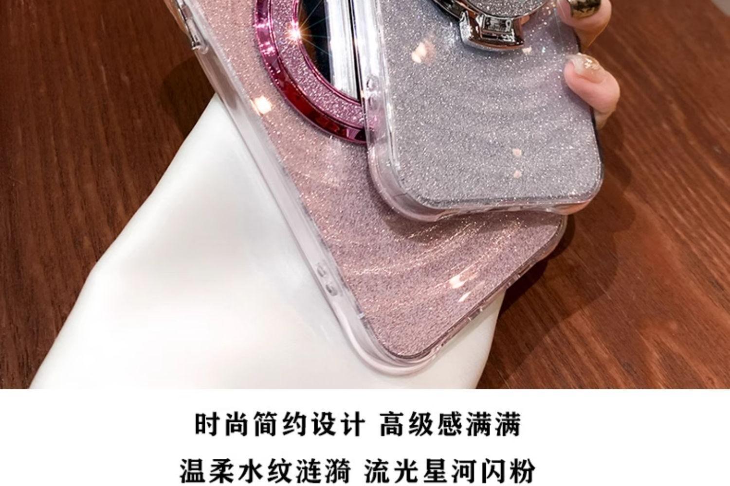 Accessories glitter Apple 15promax mobile phone case new iPhone14 four corners anti-drop 13 mirror magnetic suction bracket 12 women