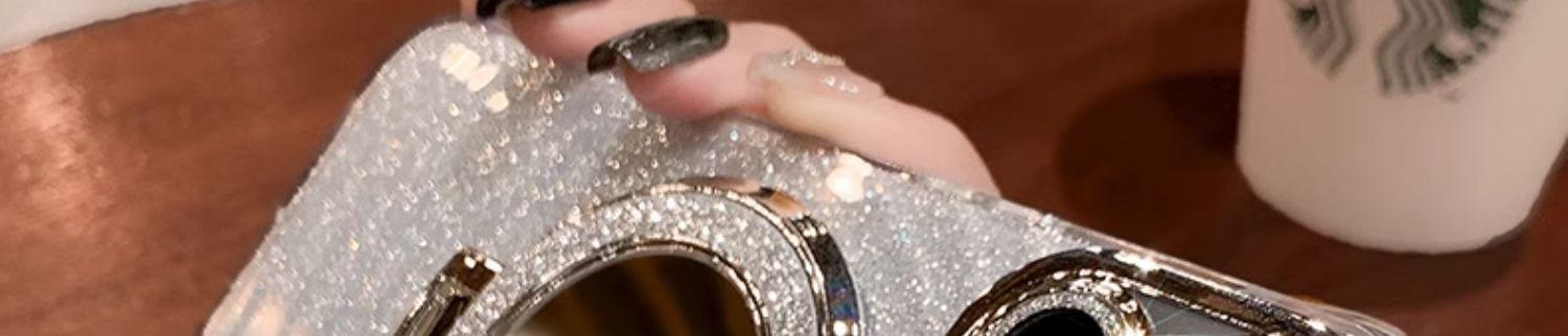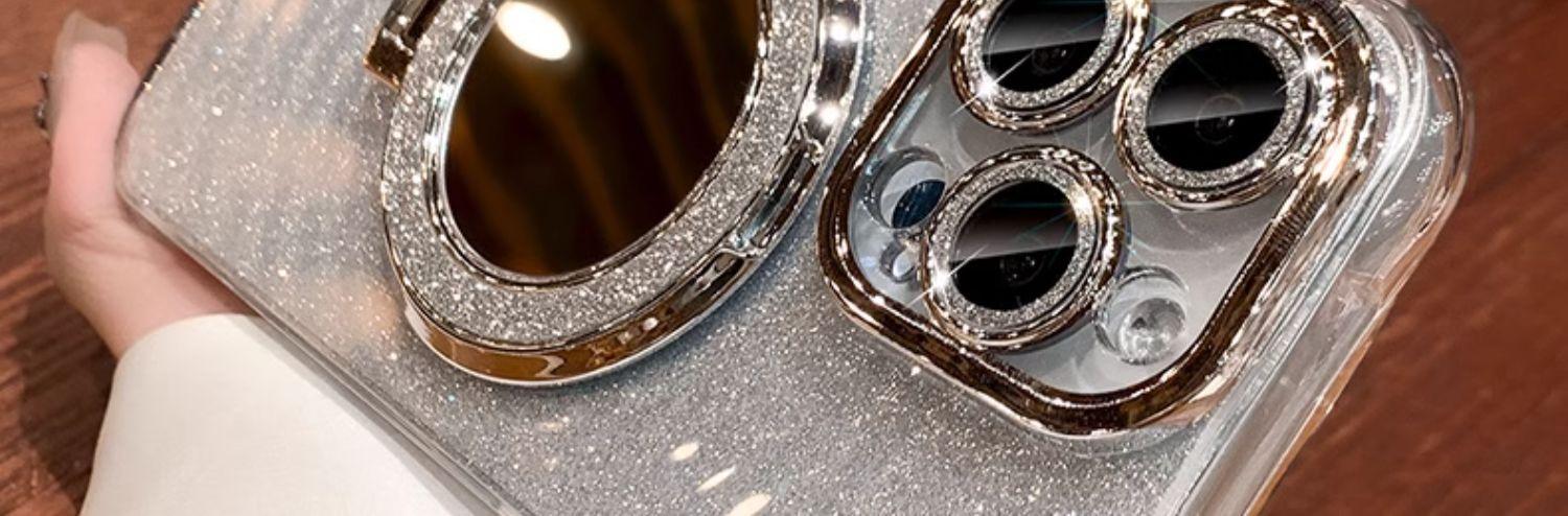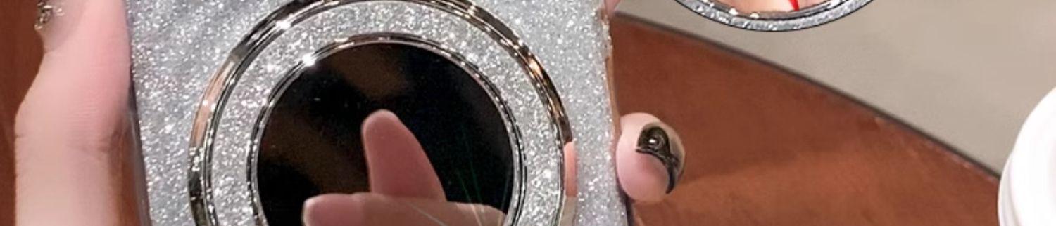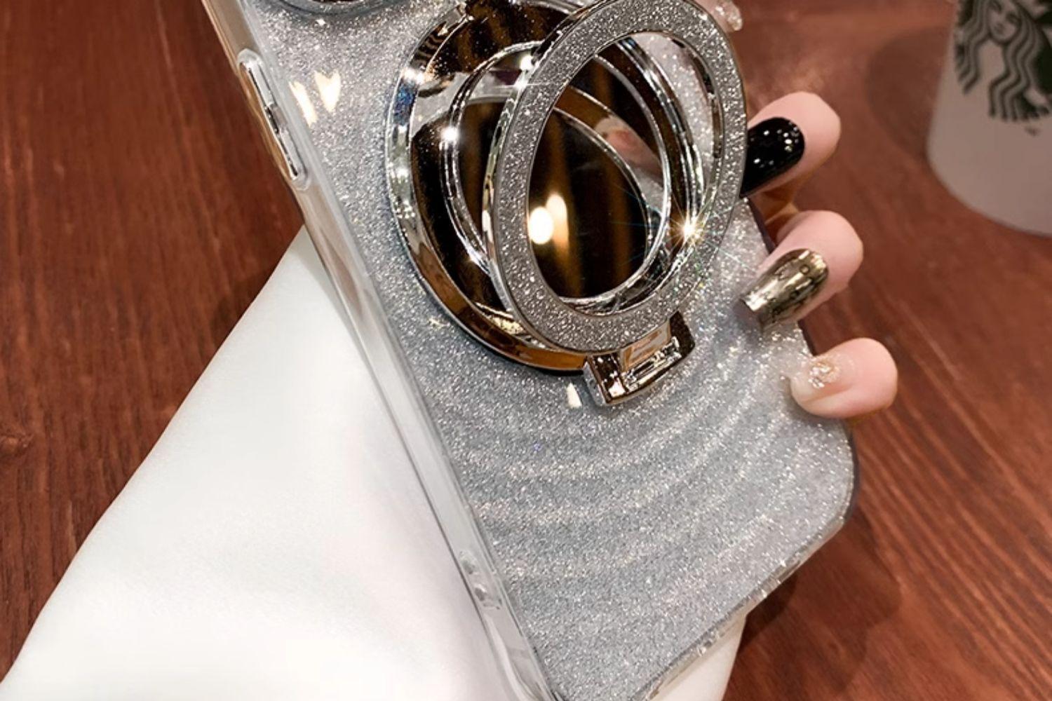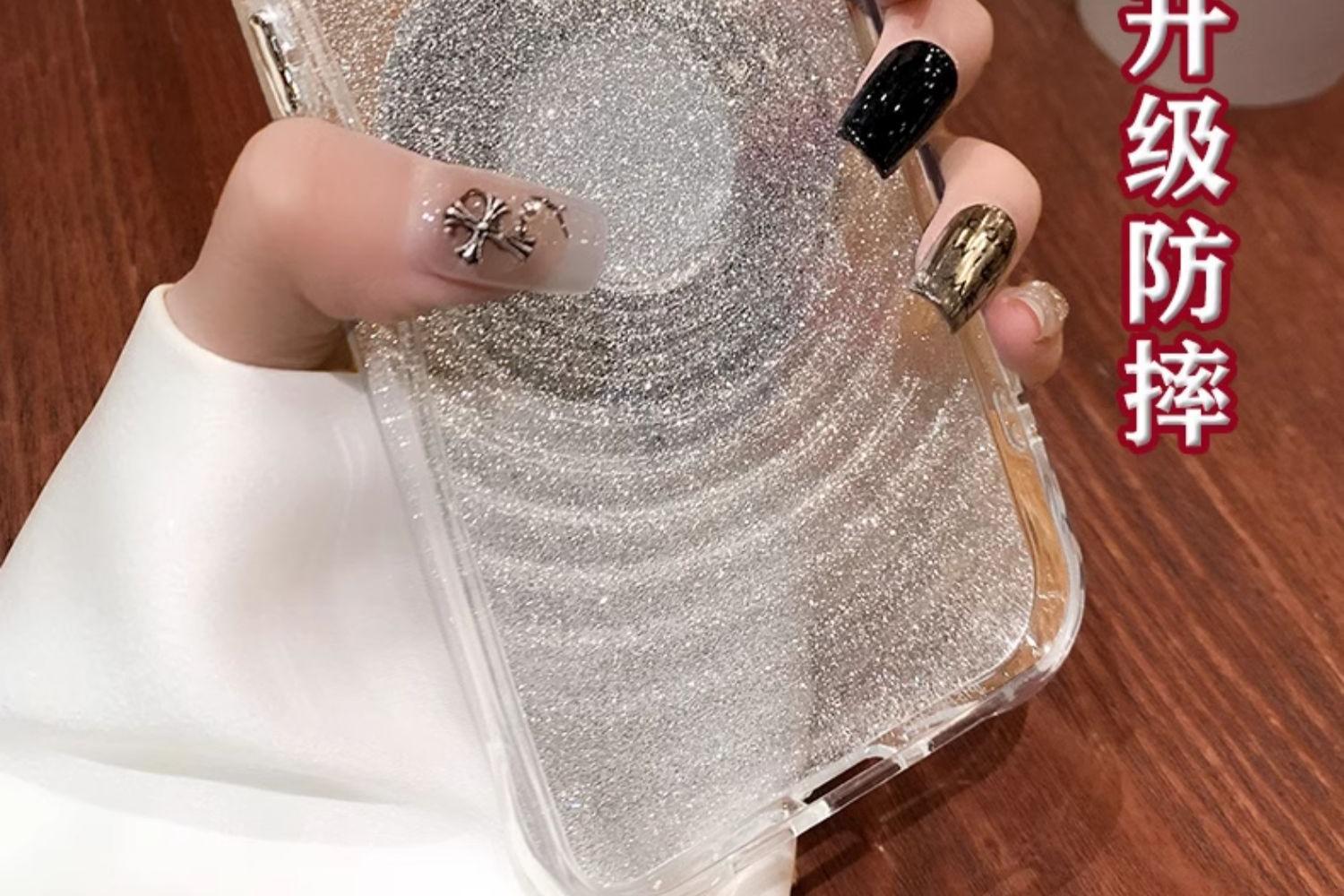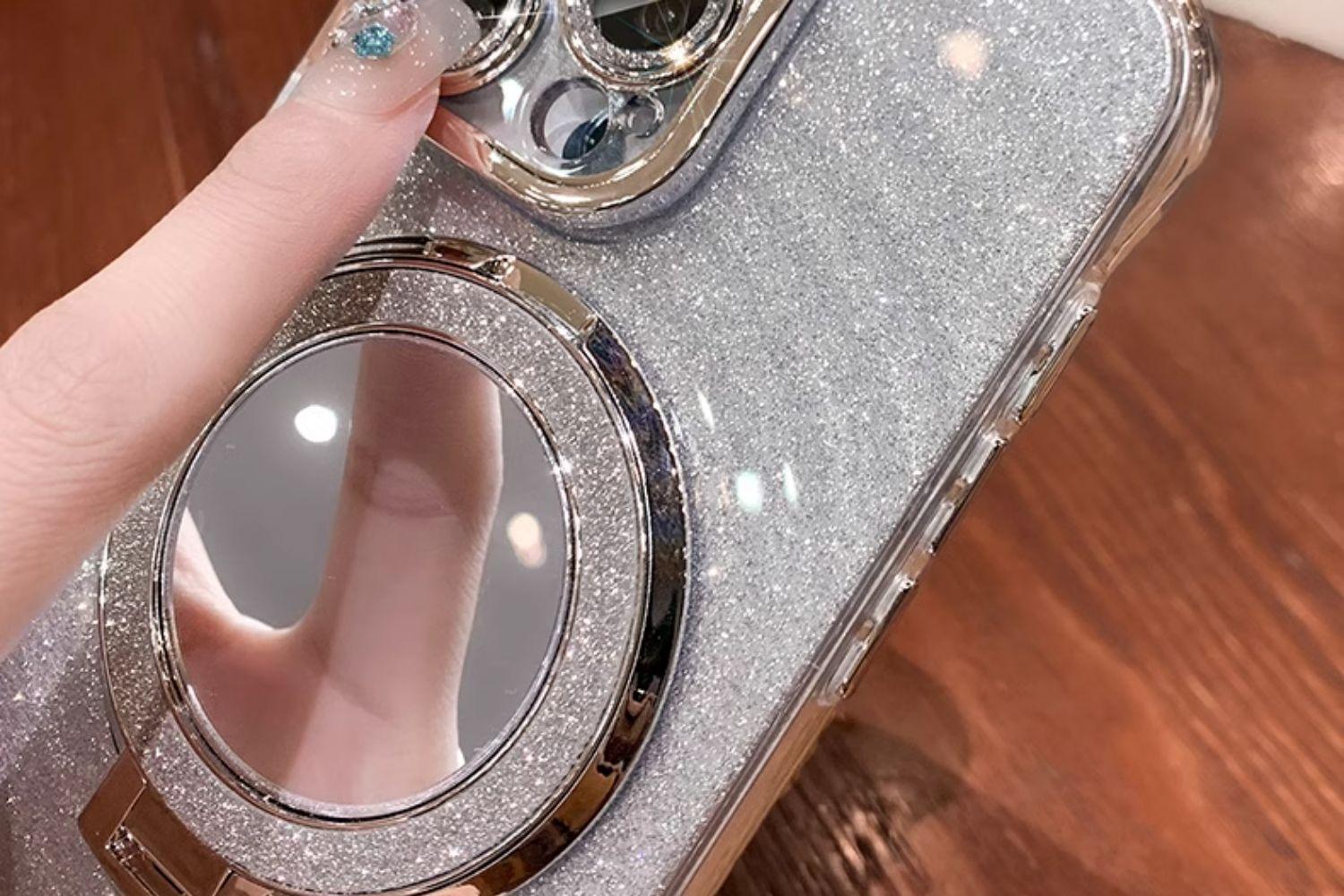Accessories glitter Apple 15promax mobile phone case new iPhone14 four corners anti-drop 13 mirror magnetic suction bracket 12 women