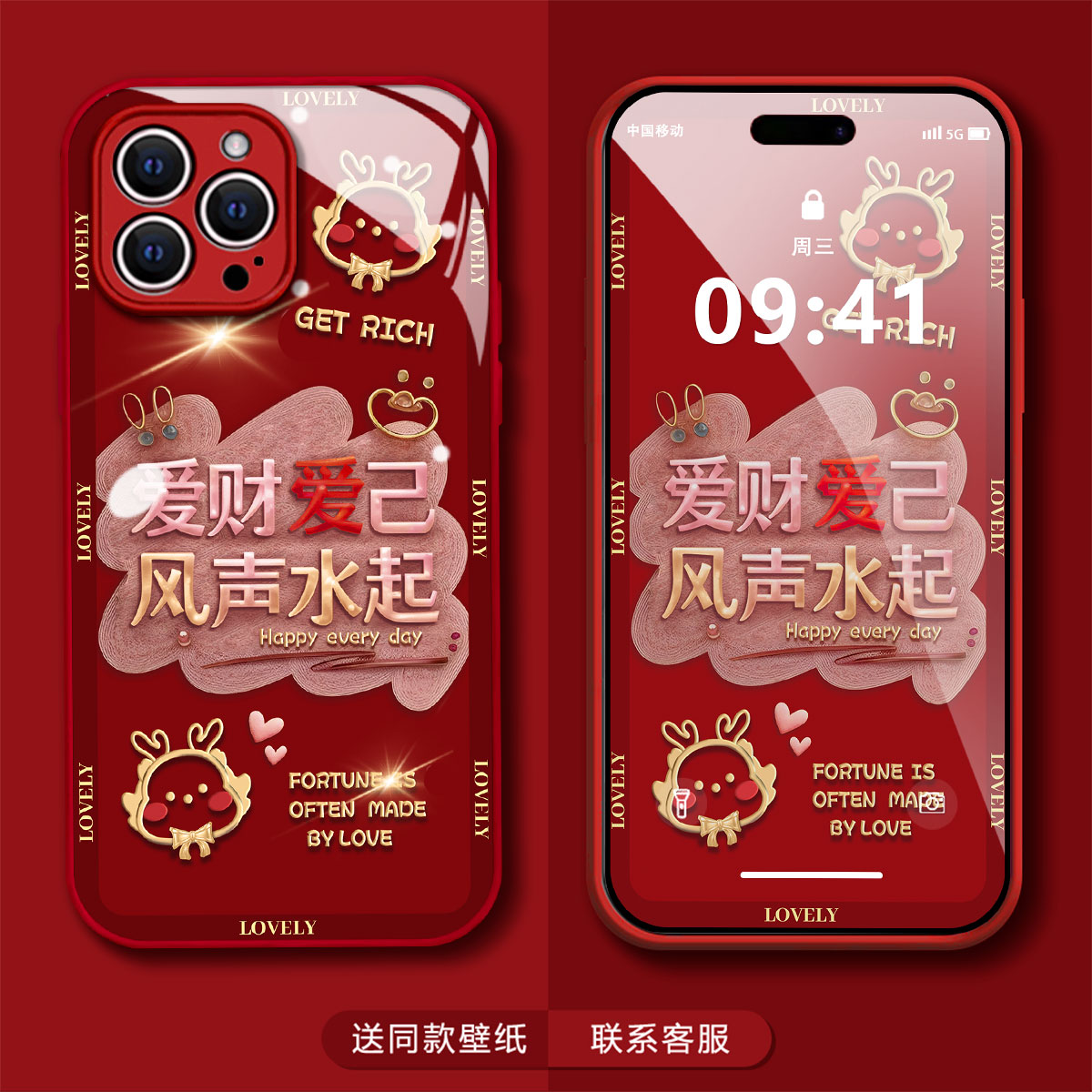 Accessories (Shipping fee not included) Applicable to 2024 Year of the Dragon New Apple 14 Liquid Glass iPhone15promax Love Wealth Love Self 13 All Inclusive