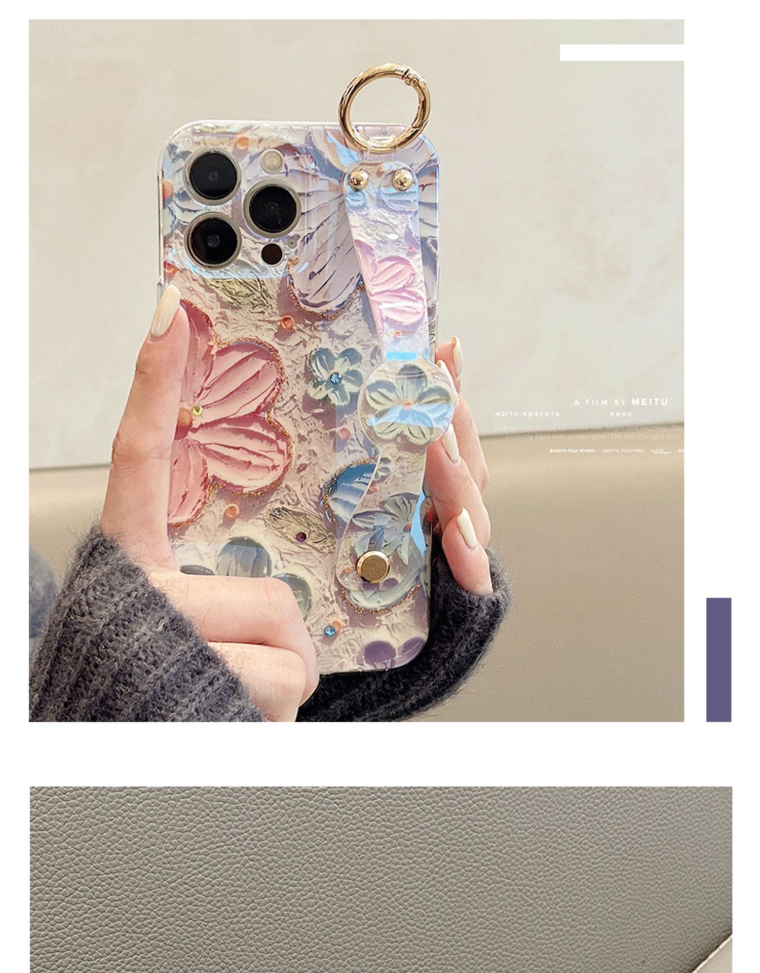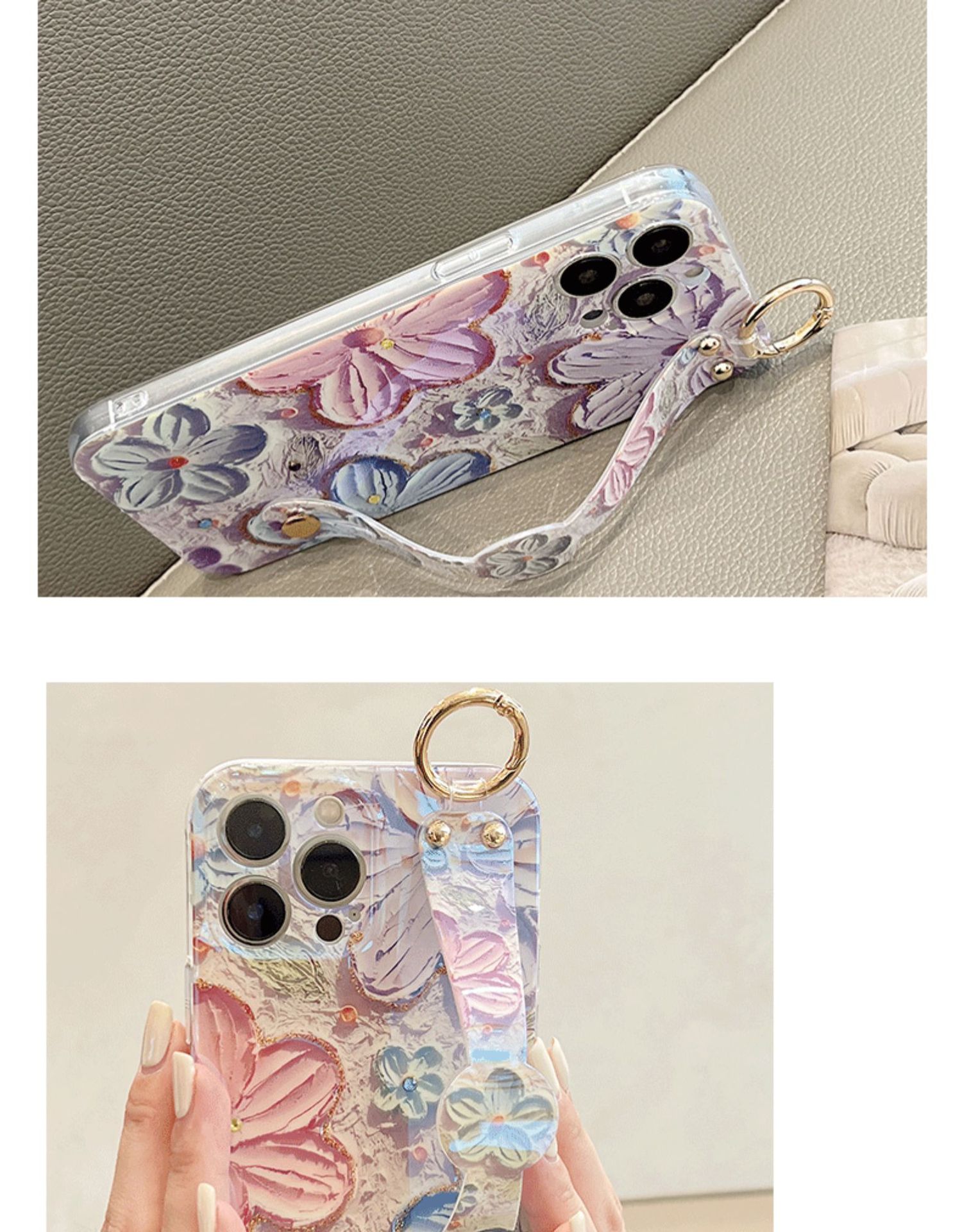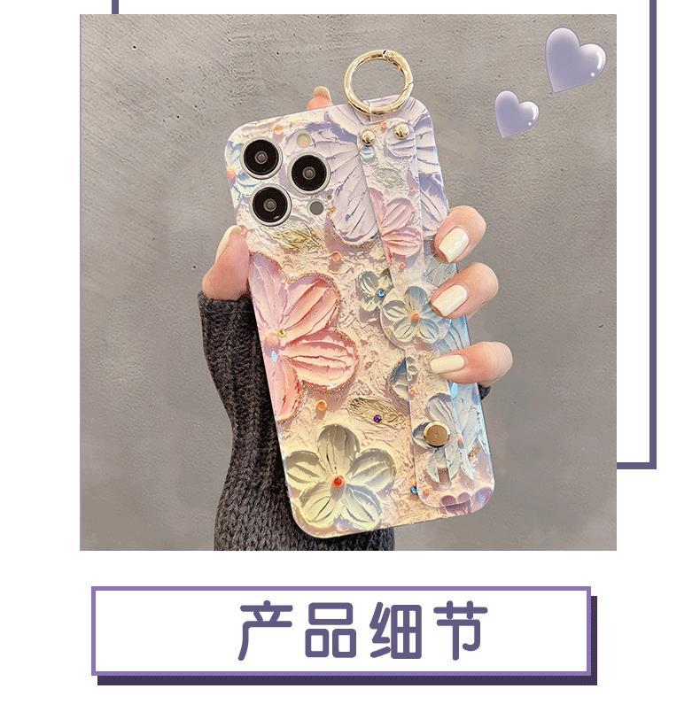 Accessories (Shipping fee not included) Applicable to iphone14promax mobile phone case Apple 13 oil painting flower wristband 11 blue light dot diamond 12 Korean women's models