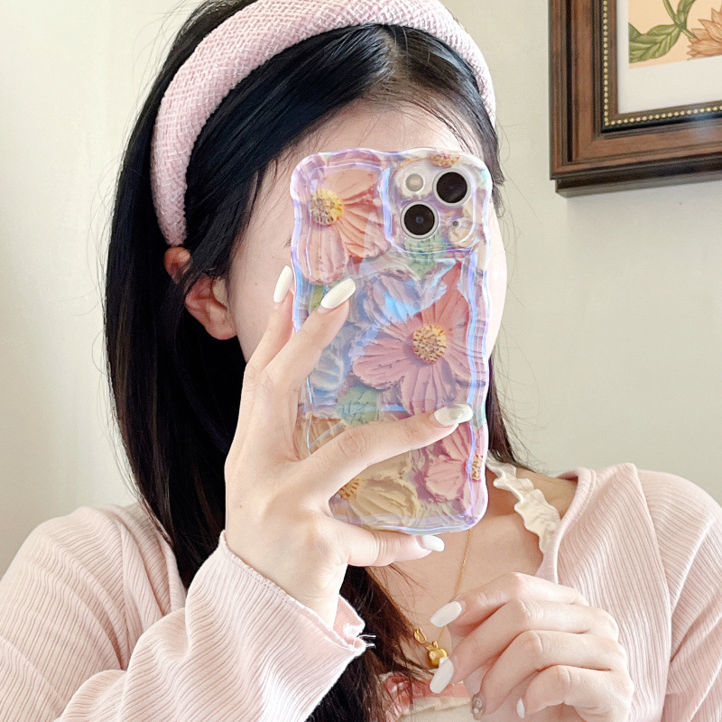 Accessories (Shipping fee not included) ins Korean pink flowers for 13 Apple 14promax mobile phone case iphone15promax new 12