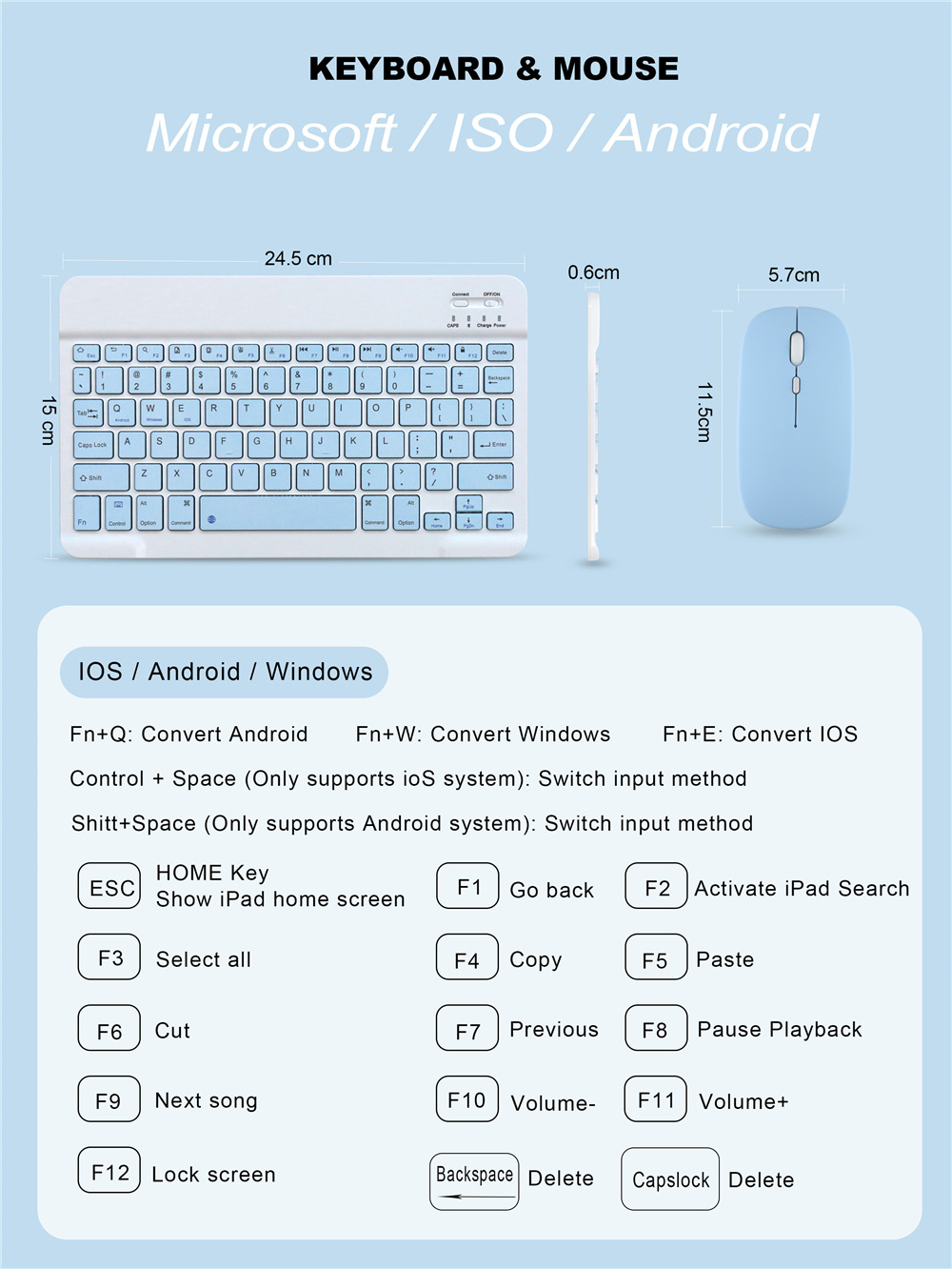 Slim portable Bluetooth keyboard and mouse set for iPad tablet 10 inch Android mobile phone Bluetooth keyboard 7 small languages protective Accessories